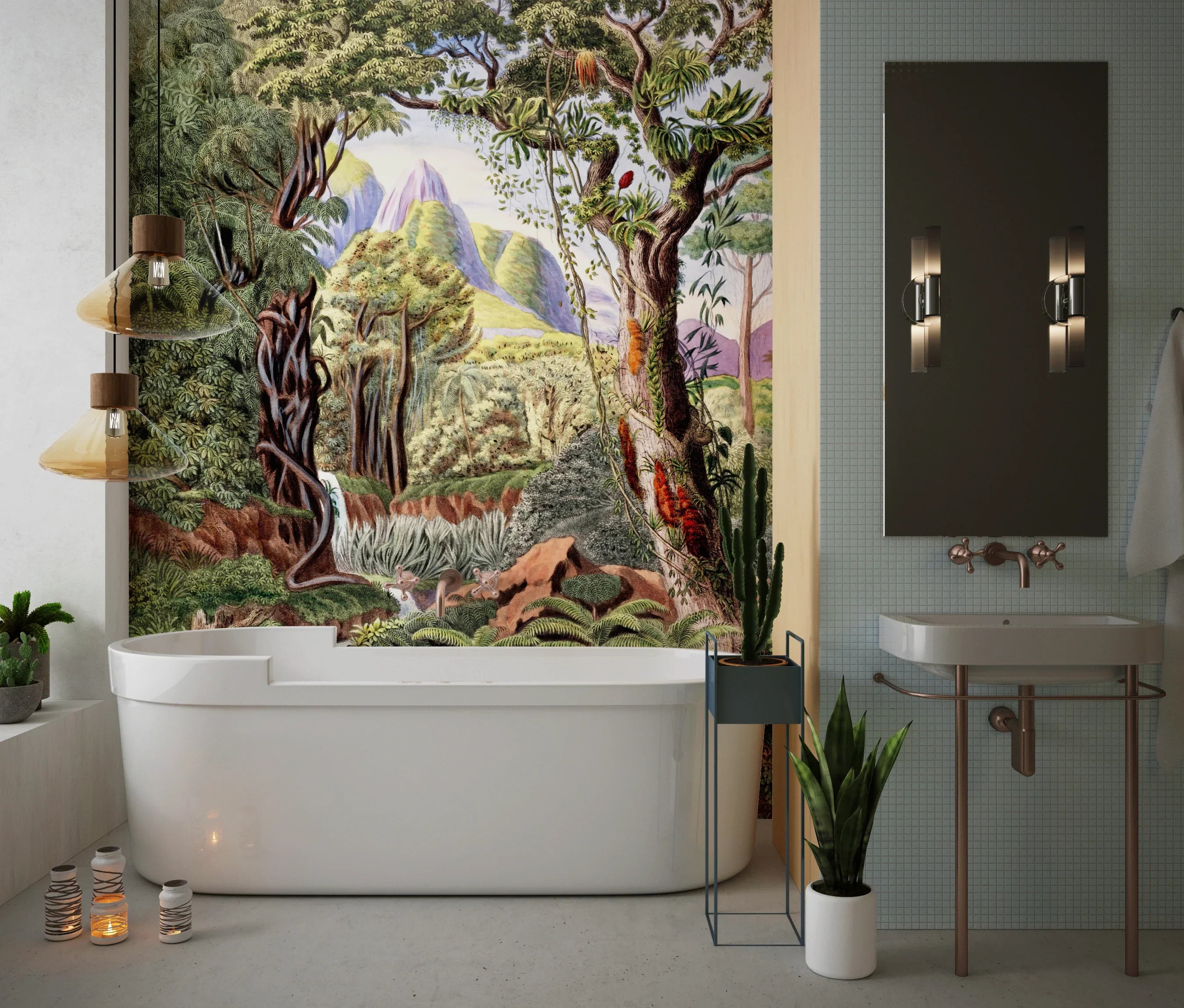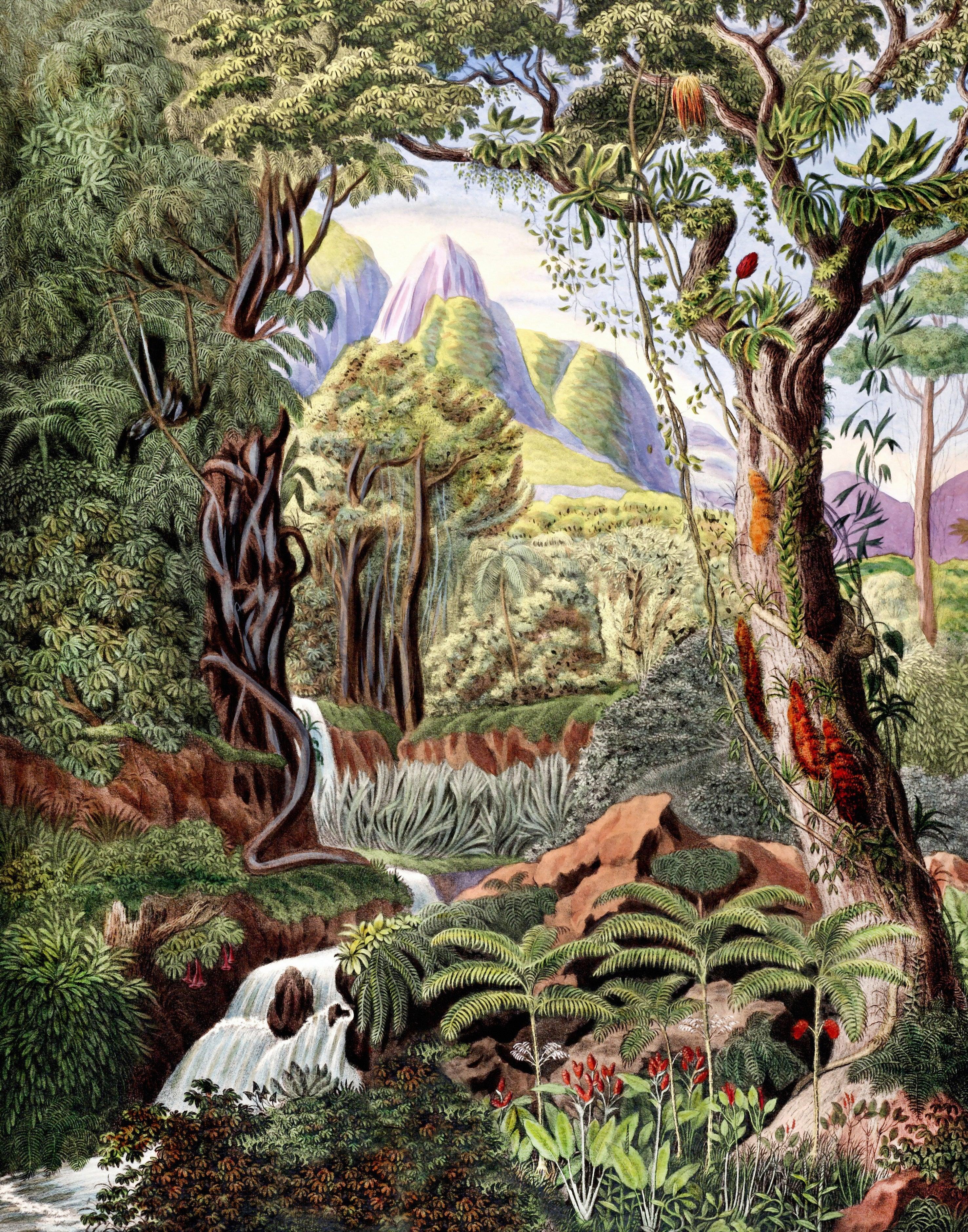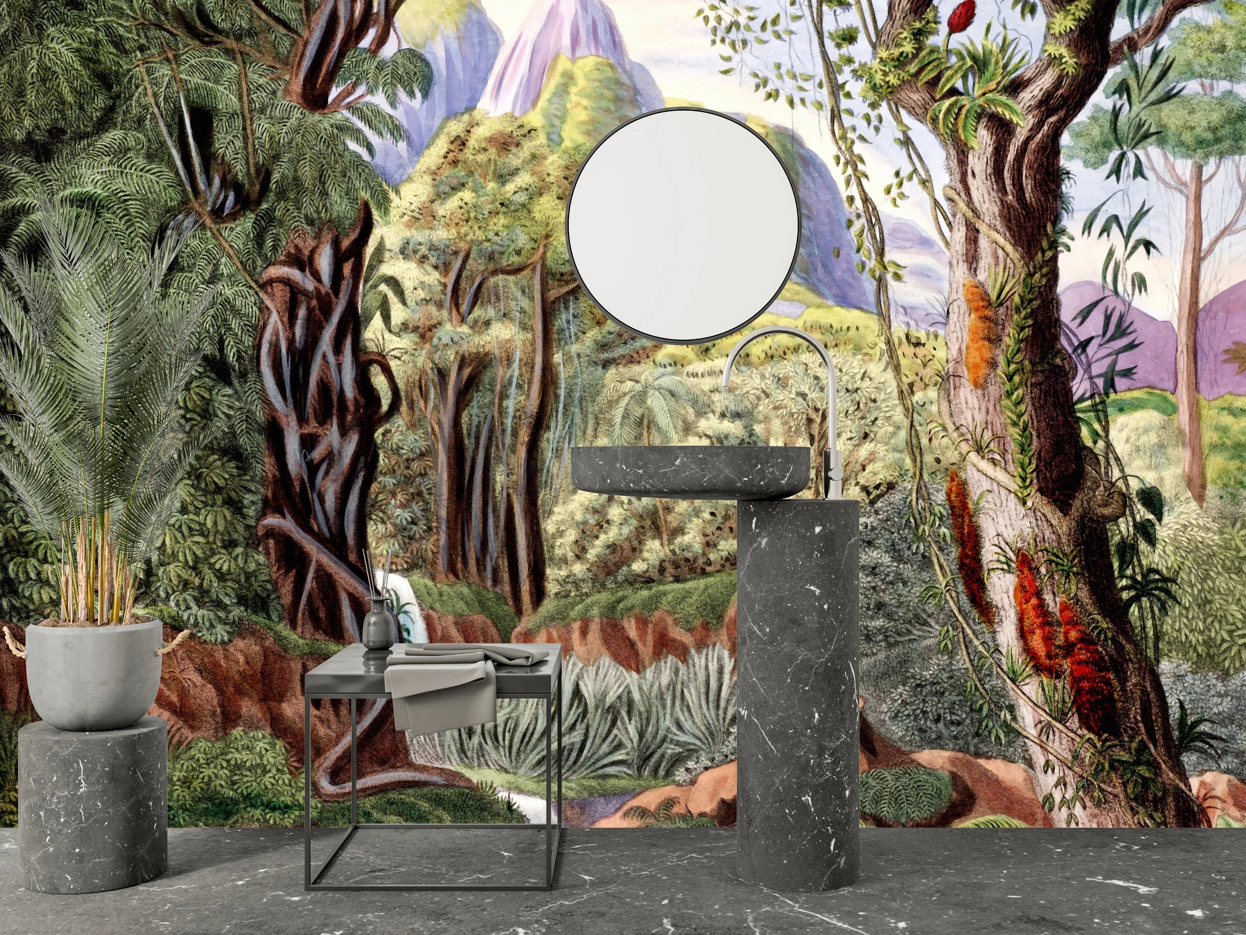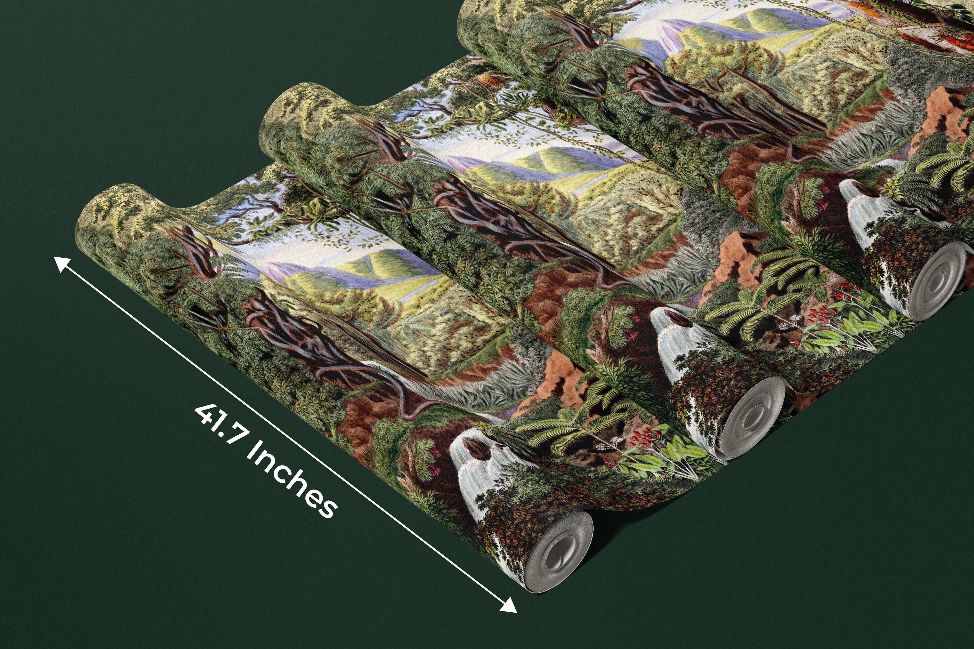Botanical Wallpaper, Colorful Jungle Scene Mural, Oversized Custom Size Wall Art, Non-Woven, Non-Adhesive, Modern Wall Paper, Removable
