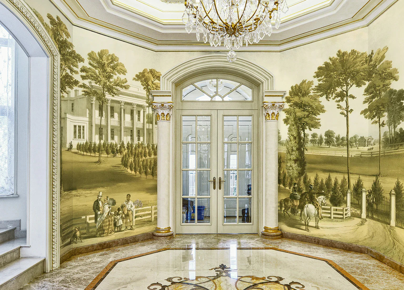 Landscape Scenic Wallpaper, Historical European Wall Mural, Light Green Custom Size Wall Covering, Non-Woven, Non-Adhesive, Removable, Washable