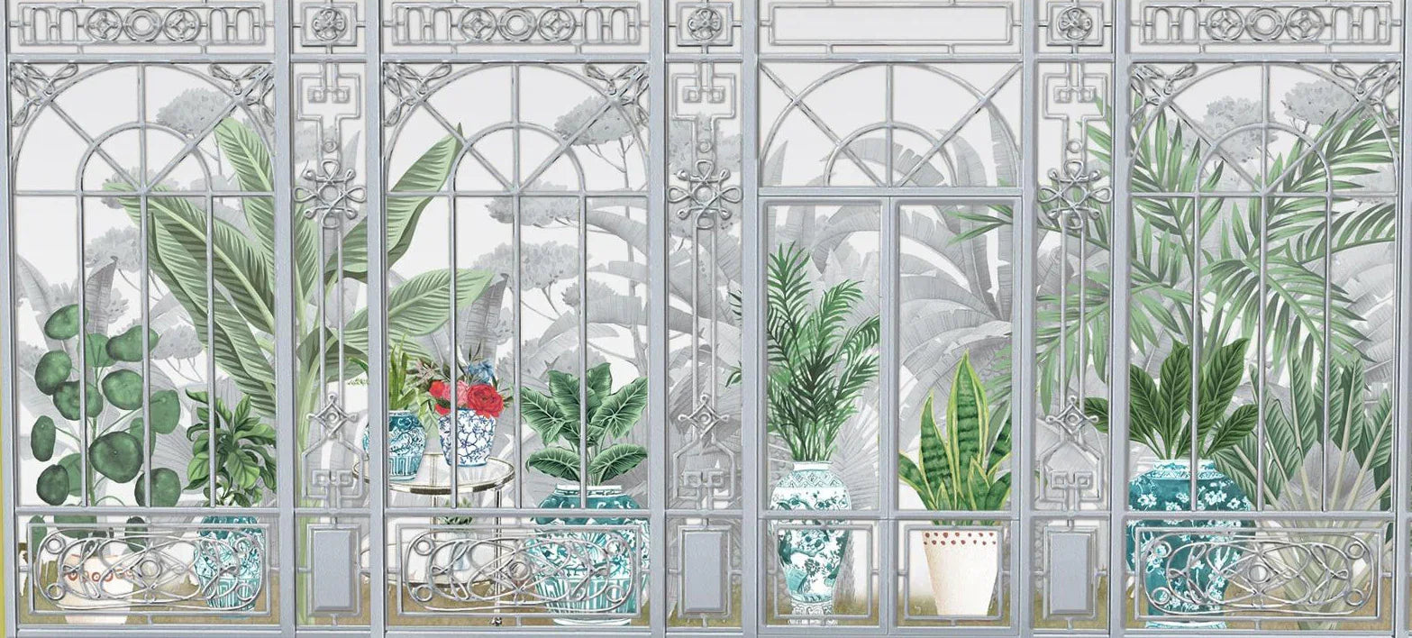 Windows Trees Wallpaper, Green Nature Scenic View Wall Mural, Tropical, Custom Size Wall Art, Non-Woven, Non-Adhesive, Removable, Durable, Large