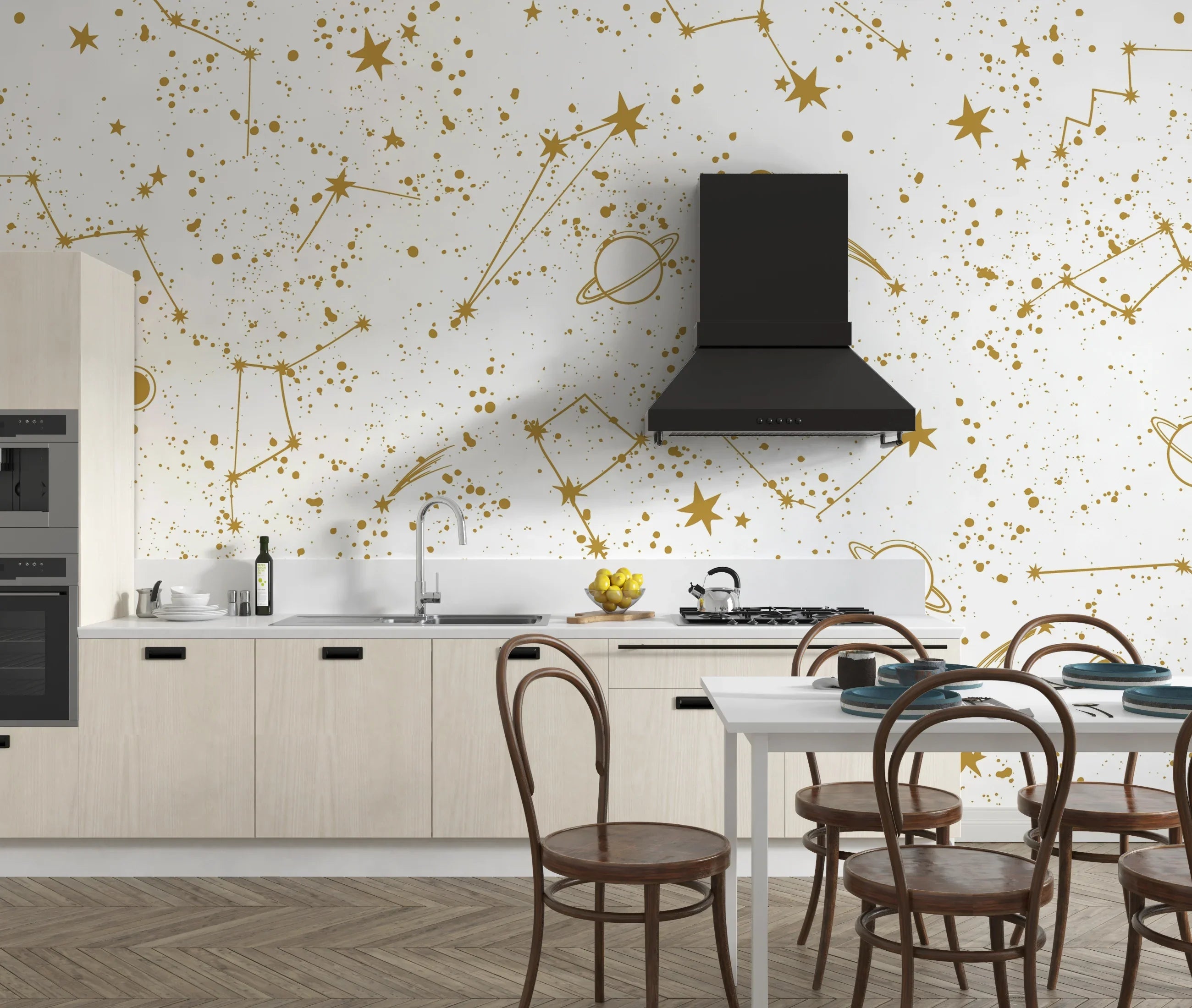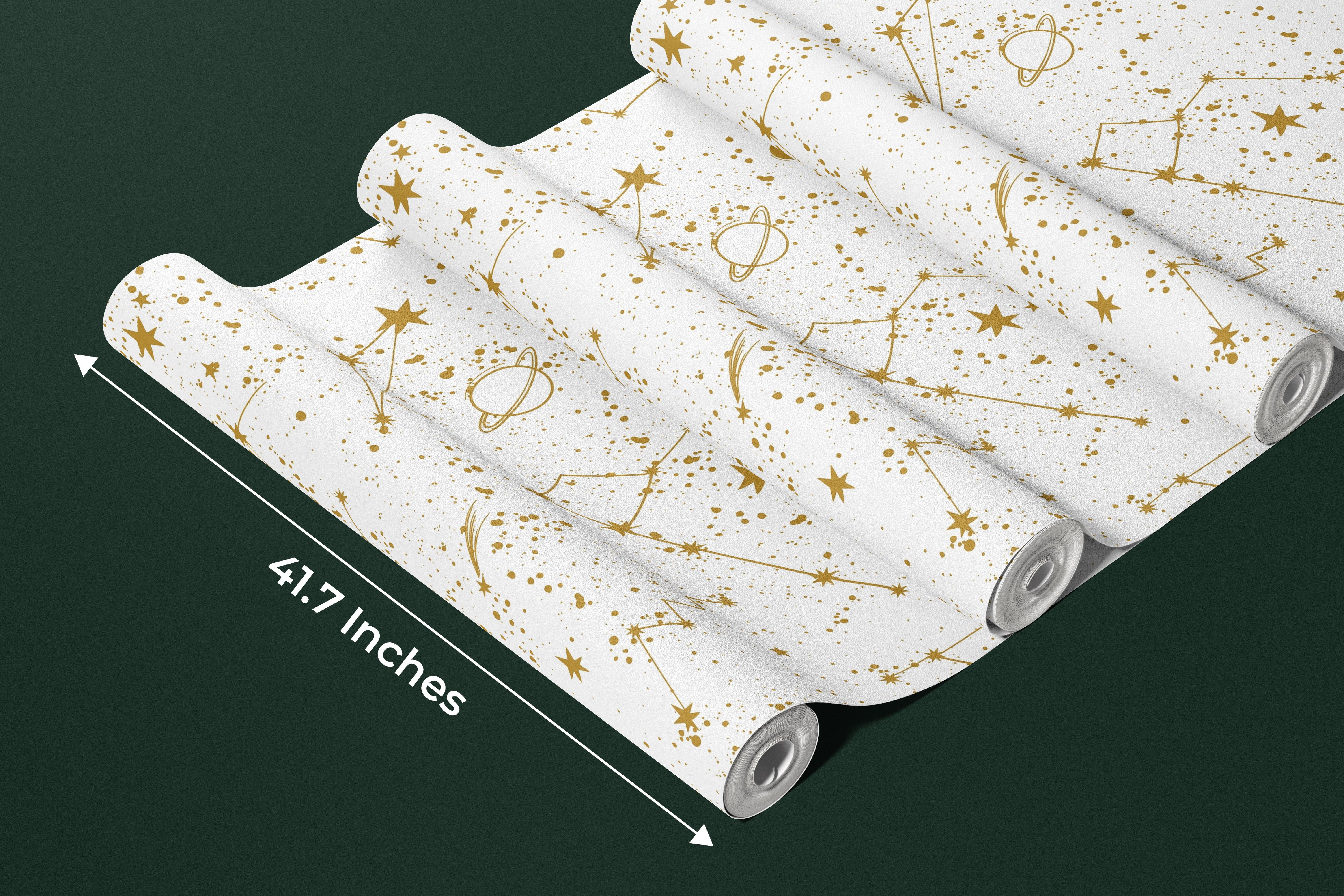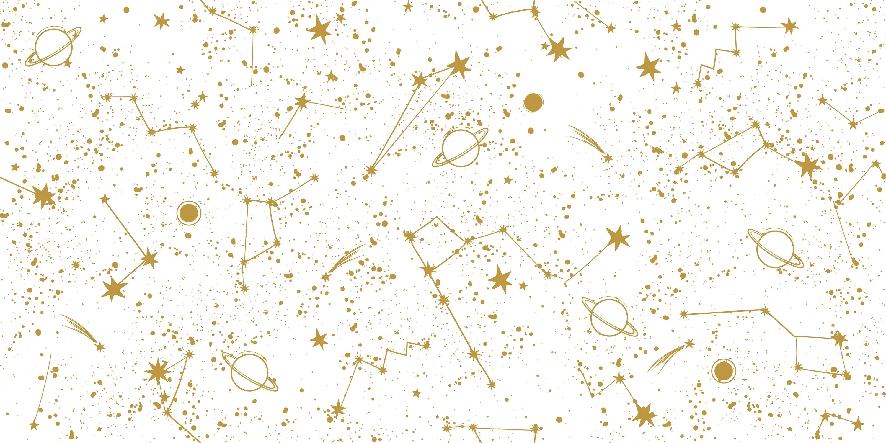 Golden Constellation Wallpaper, White Background Mural, Oversized Custom Size Wall Art, Non-Woven, Non-Adhesive, Modern Wall Paper, Removable