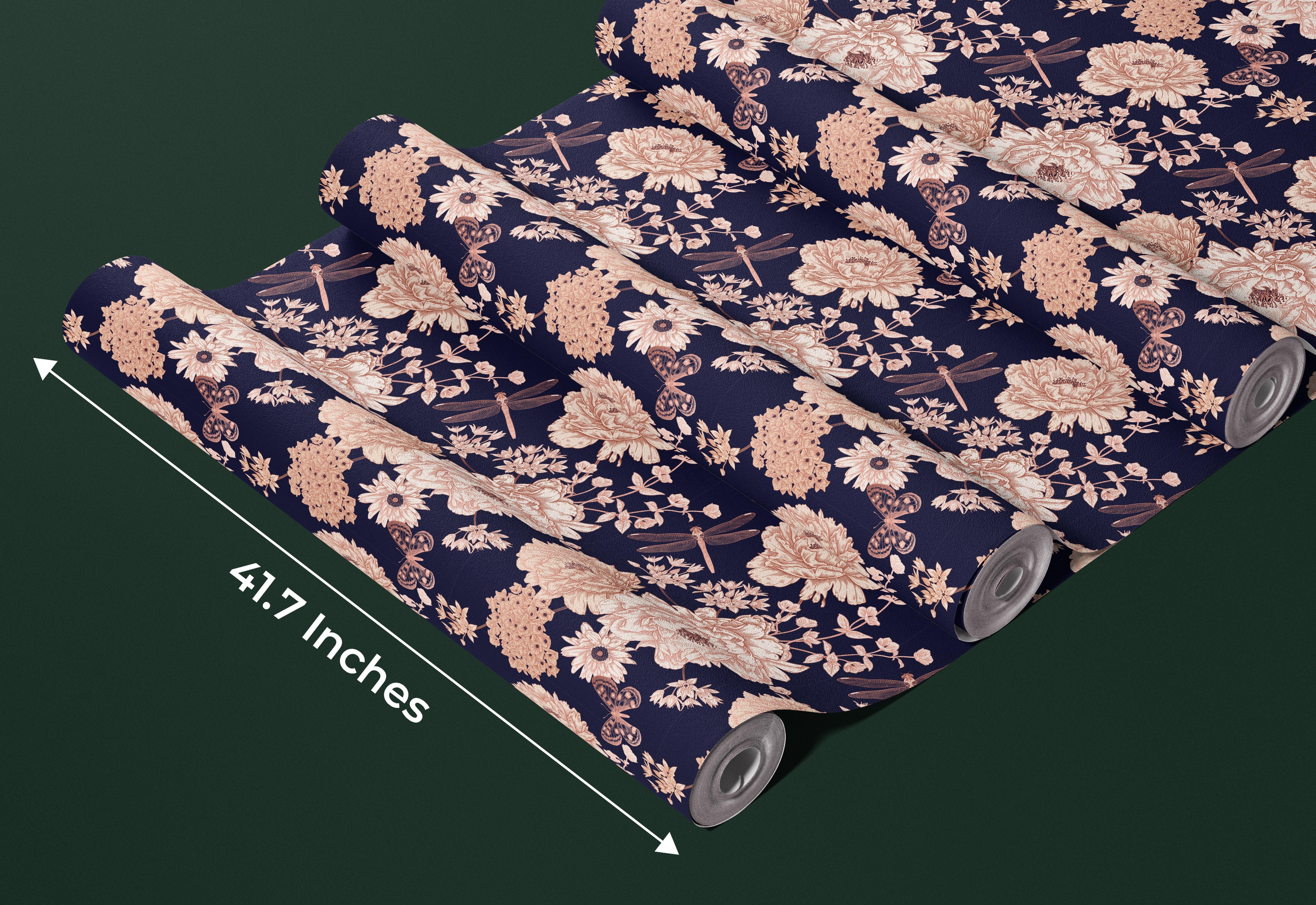 White and Gold Blooming Flowers Wallpaper, Dark Seamless Pattern Mural, Oversized Custom Size Wall Art, Non-Woven, Non-Adhesive, Modern Wall Paper, Removable