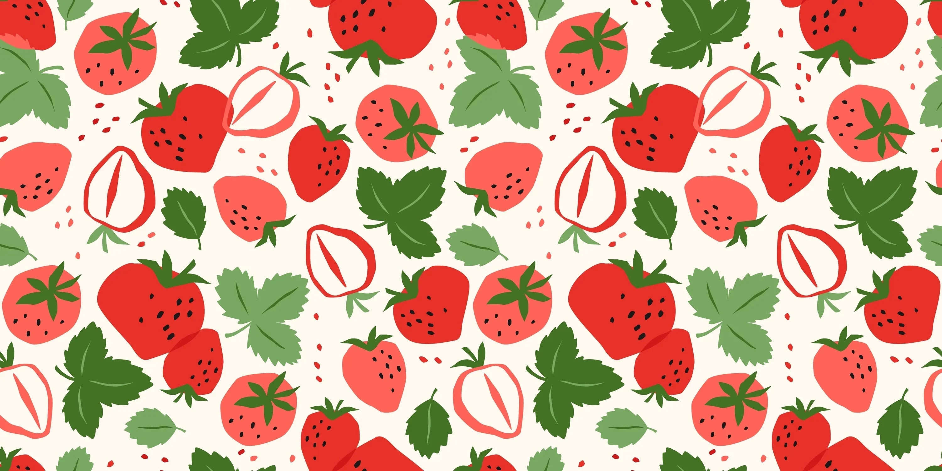 Strawberries, White Background Wallpaper, Seamless Pattern Mural, Oversized Custom Size Wall Art, Non-Woven, Non-Adhesive, Modern Wall Paper, Removable
