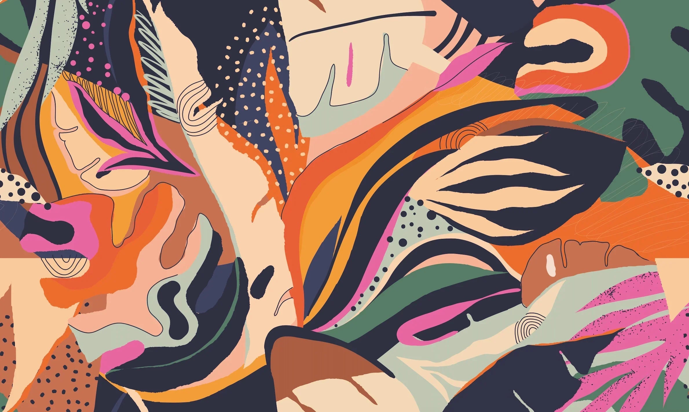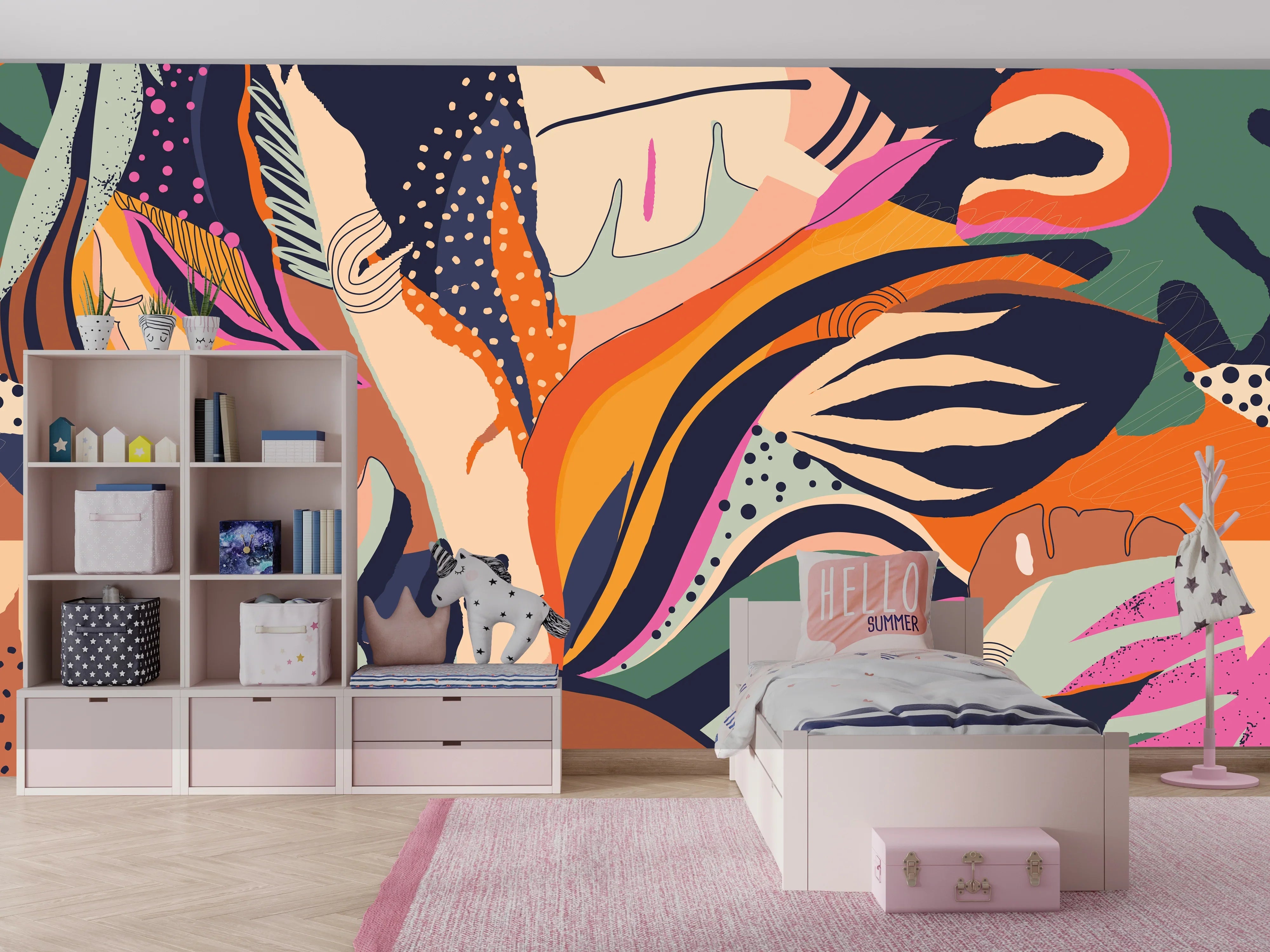 Exotic Jungle Plants Wallpaper, Abstract Mural, Oversized Custom Size Wall Art, Non-Woven, Non-Adhesive, Modern Wall Paper, Removable