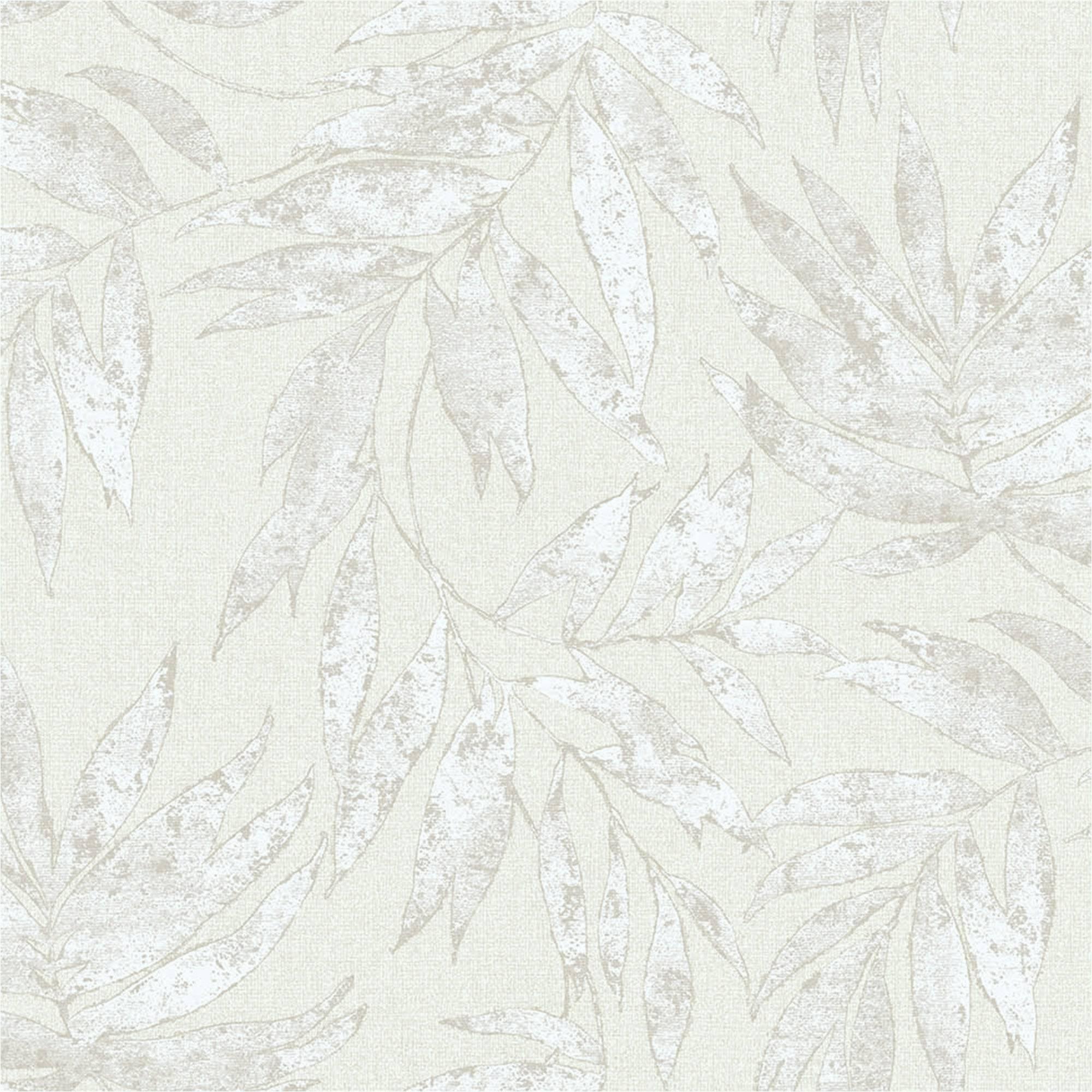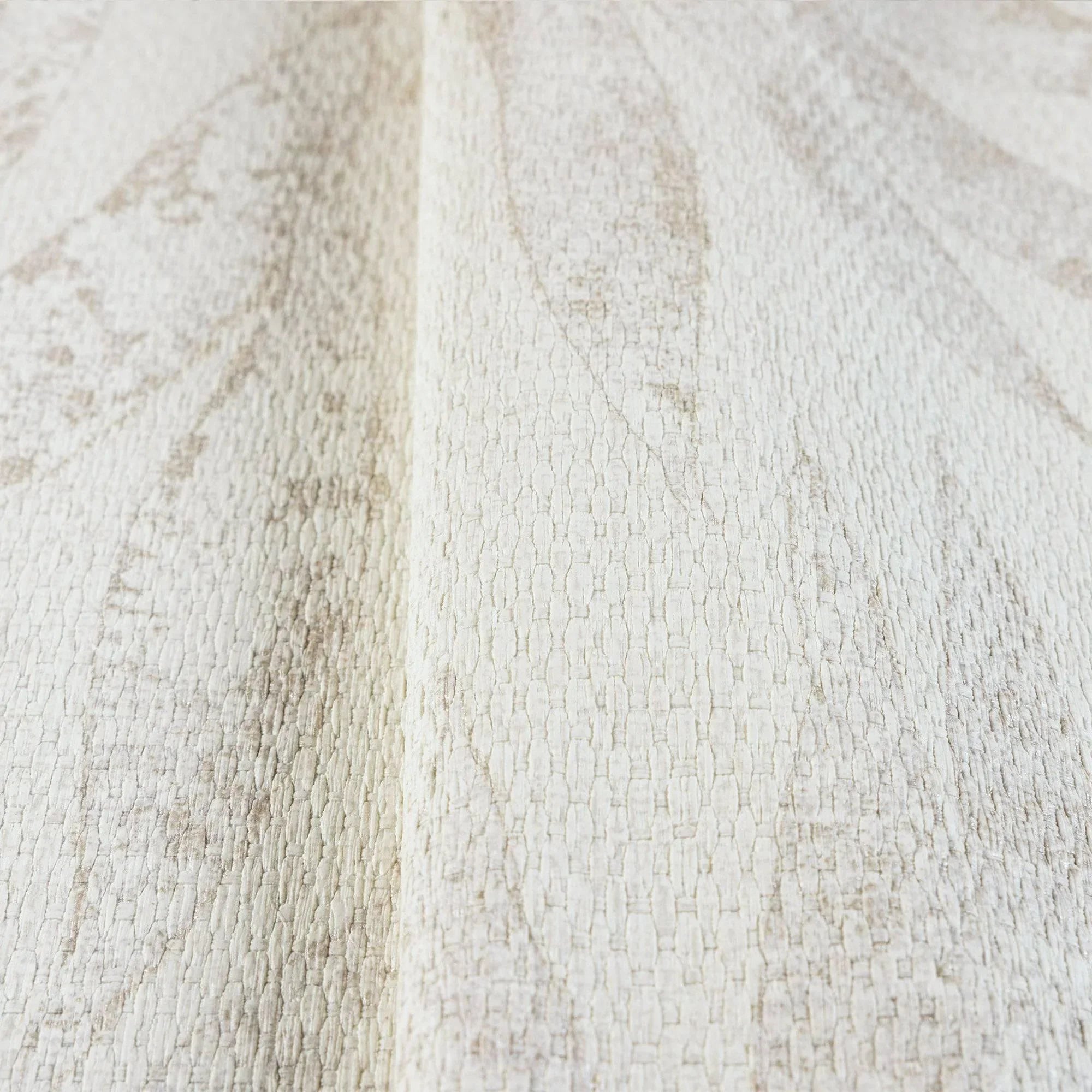 Washed White Leaf Wallpaper, Textured Faded Tree Leaves Wallcovering, Non-Pasted