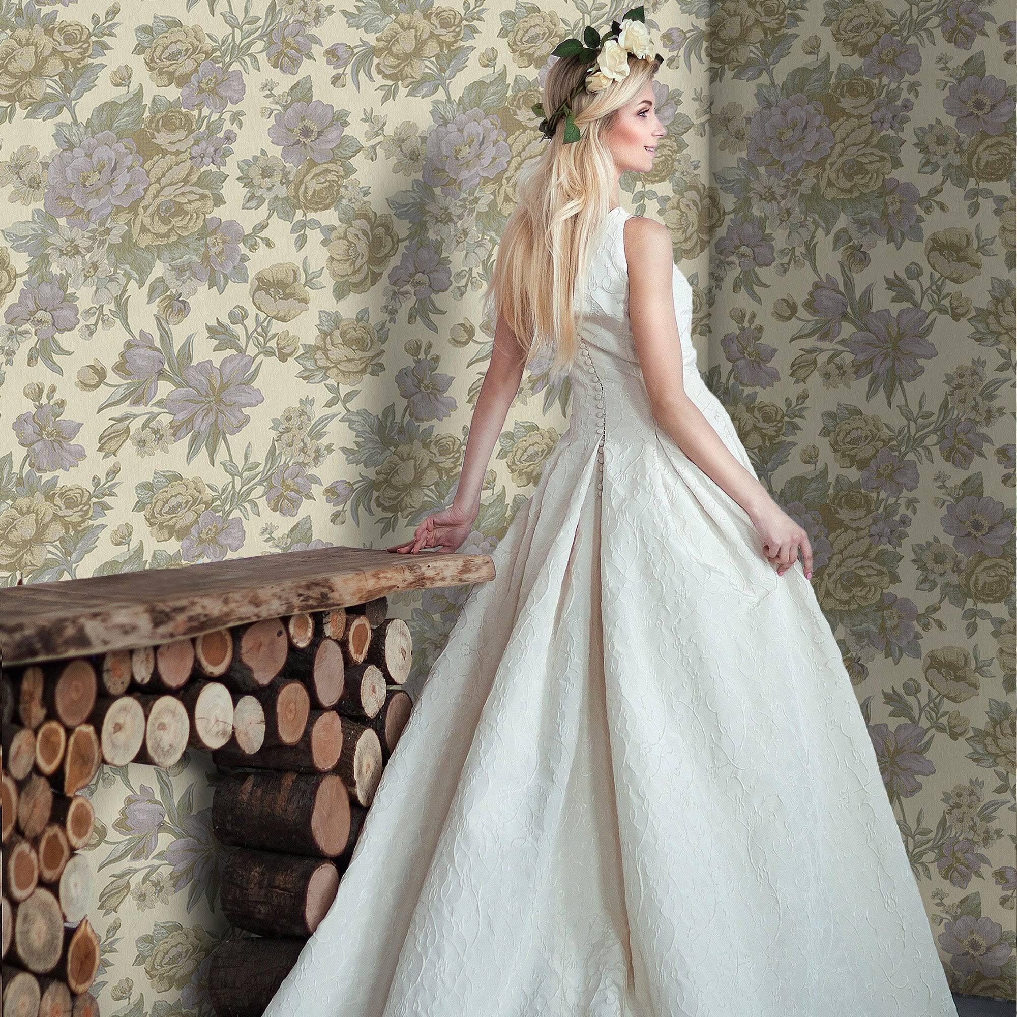 Purple Charming Floral Deep Embossed Wallpaper, Bloom Blossom Flower Design Interior Wall Decor