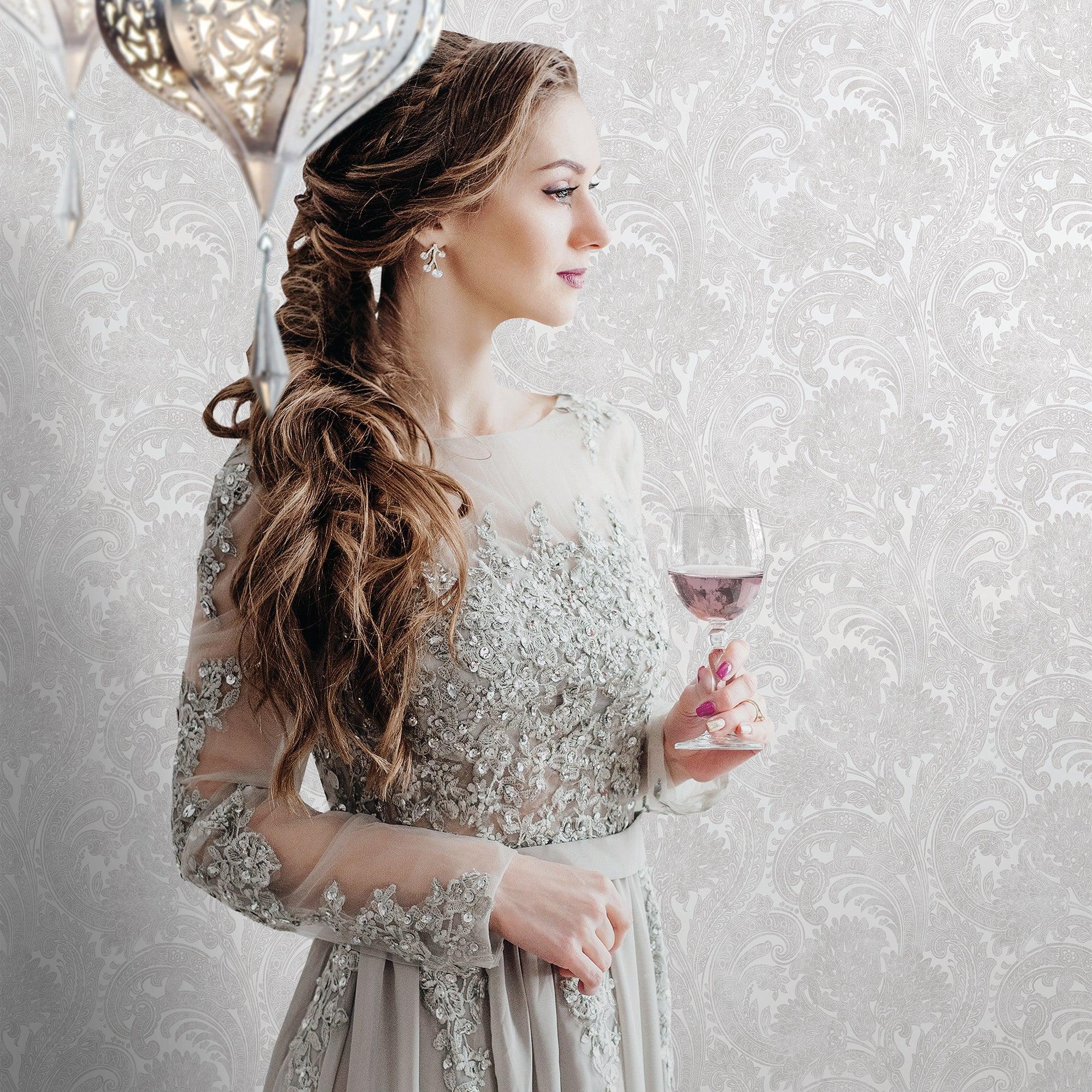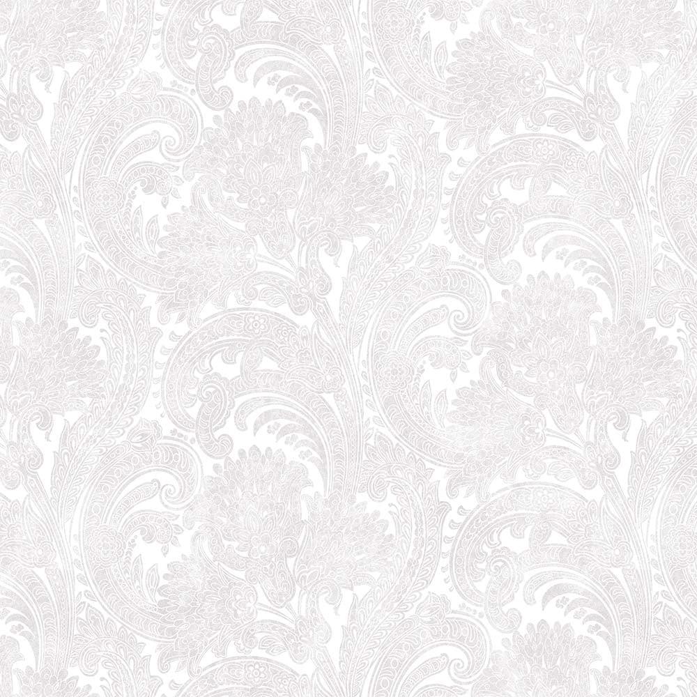Washed White Paisley Pattern Wallpaper, Rich Textured Wallcovering, Traditional, Extra Large 114 sq ft Roll, Washable, Home Wall Decor, Durable