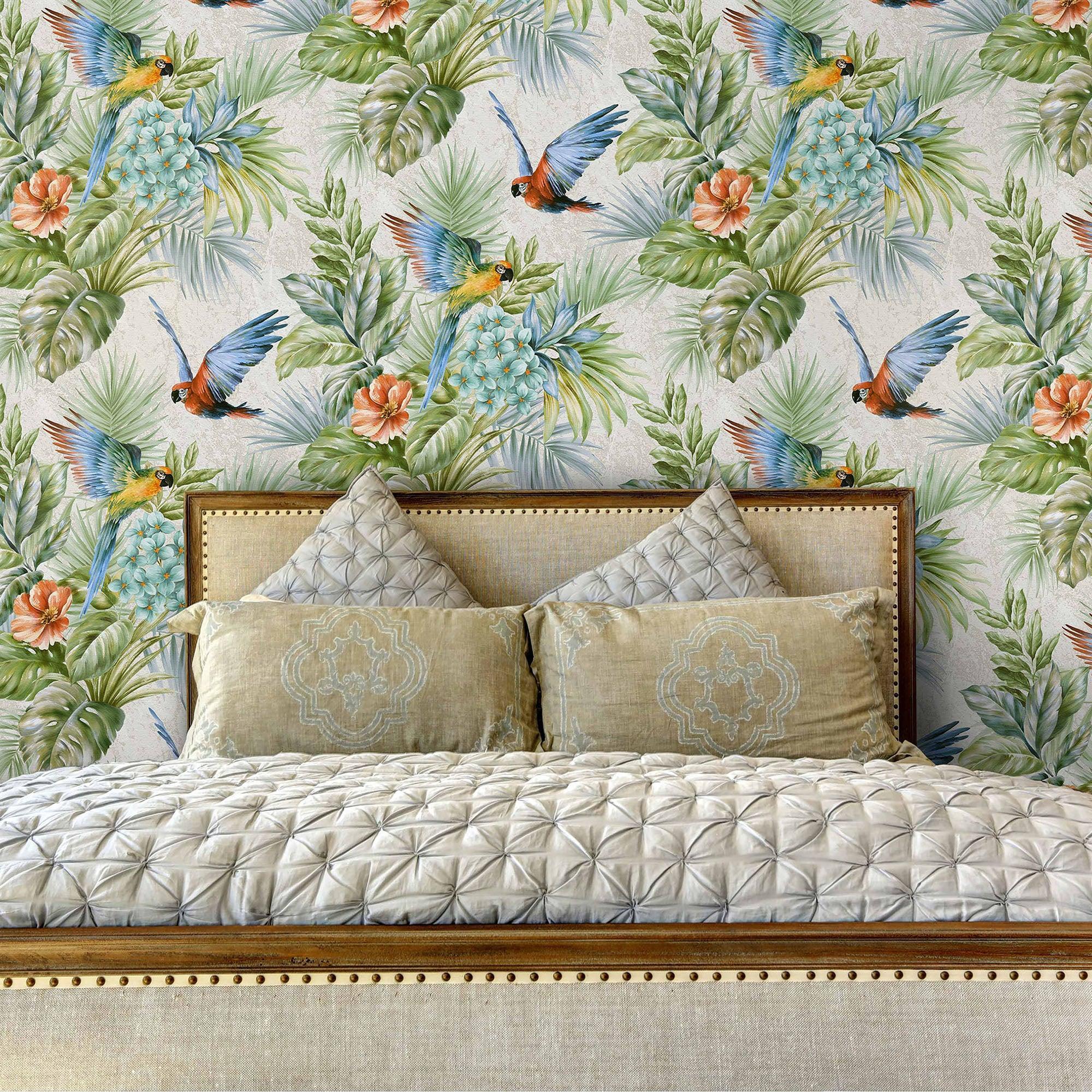 Transform your space with the enchanting beauty of our deep embossed tropical birds wallpaper. This stunning wallpaper features vivid and colorful parrots amidst a lush floral avian paradise, creating a botanical haven in your home. With a nature-inspired design, it brings the charm of exotic birds and vibrant flowers to your living space, evoking the feeling of a tropical forest in the heart of spring and summer. This contemporary wallpaper captures the essence of a jungle bird's world, with naturalistic and whimsical details that will mesmerize. Choose from color options including white, cream, multi-color, and black to match your unique style. Experience the allure of the tropics in the comfort of your home with this captivating wallpaper.