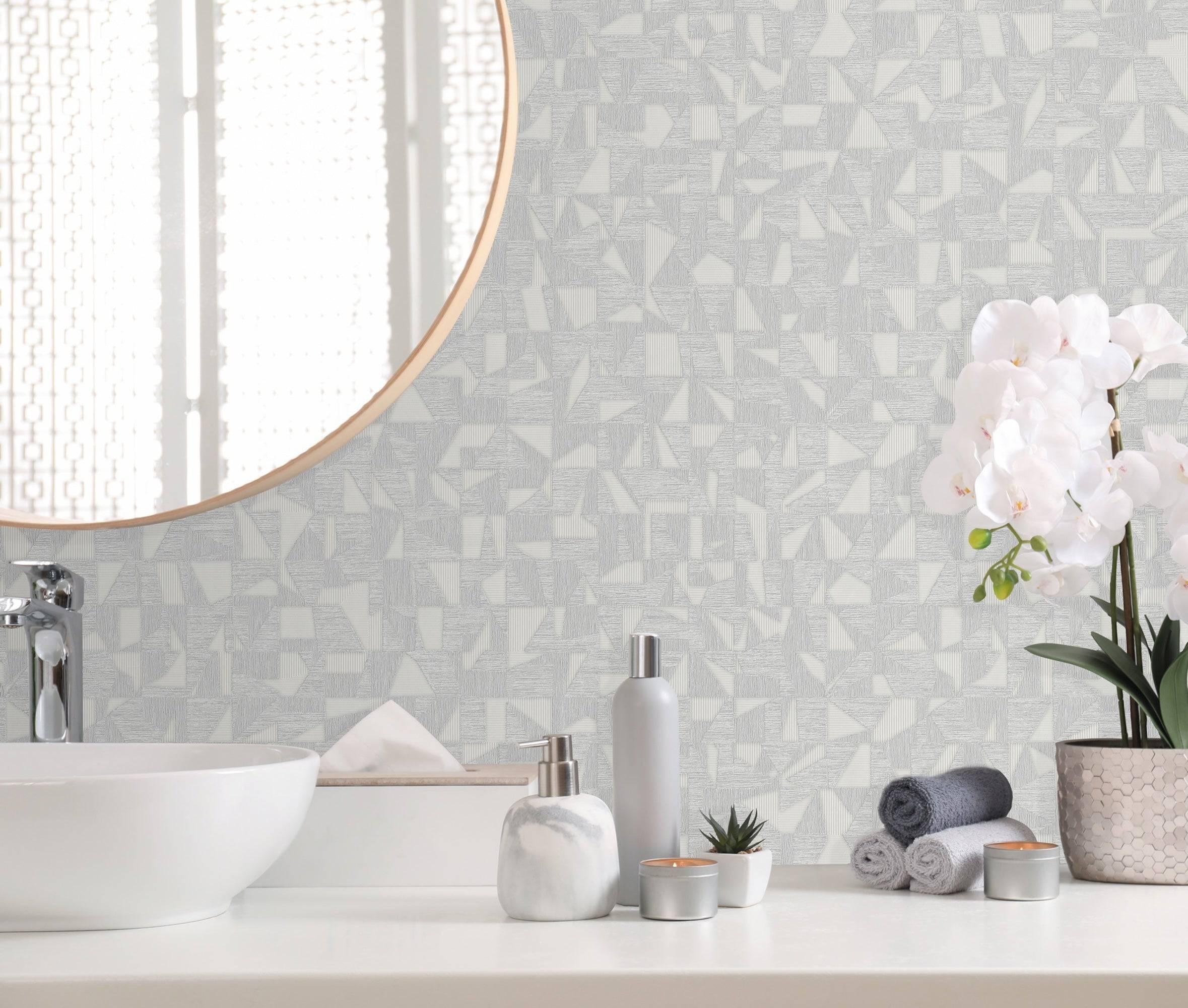Shimmering Geometric Shapes Wallpaper, Light Gray Deep Embossed Asymmetrical Design Wallcovering