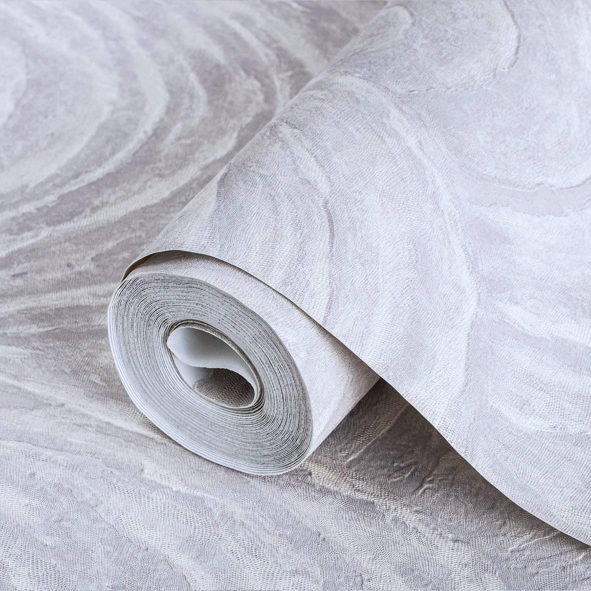 Ivory Distressed Solid Color Wallpaper, 3D Embossed Shiny Wallcovering, Weathered Effect