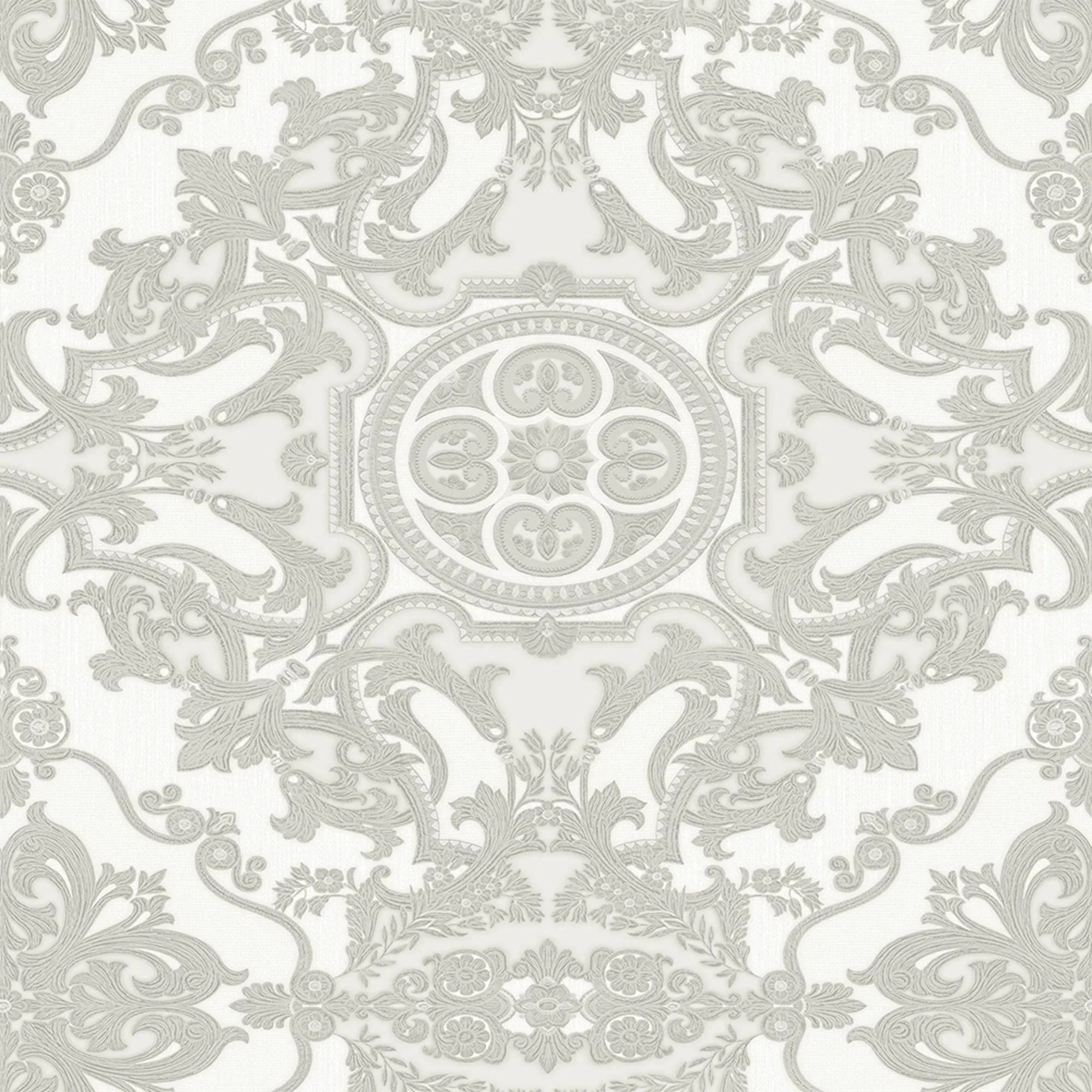 Timeless Design 3D Embossed Damask Wallpaper, White, Silver Luxury Velvet Feeling Wallcovering, Large 114 sq ft Roll