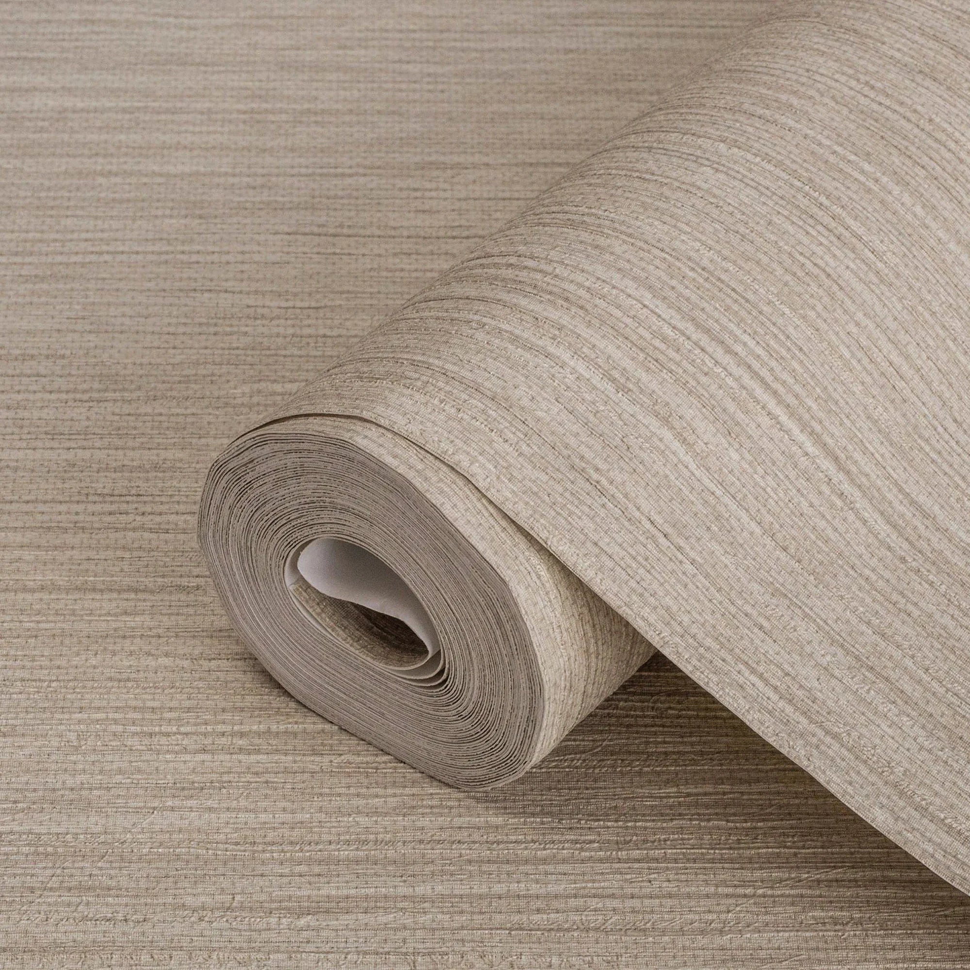 Beige Modern Striped Embossed Wallpaper, Jute Natural Color Linen Textured Wallcovering
