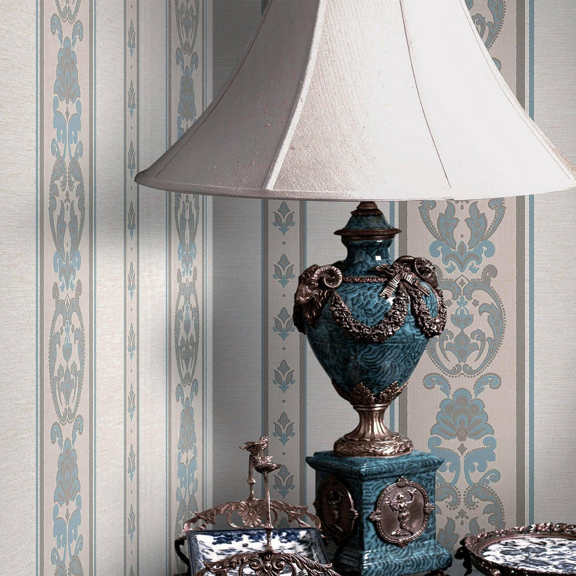Elegant Deep Embossed Striped Wallpaper, Shiny Light Blue Damask 3D Textured Wallcovering, Traditional, Large 114 sq ft Roll, Accent Wall