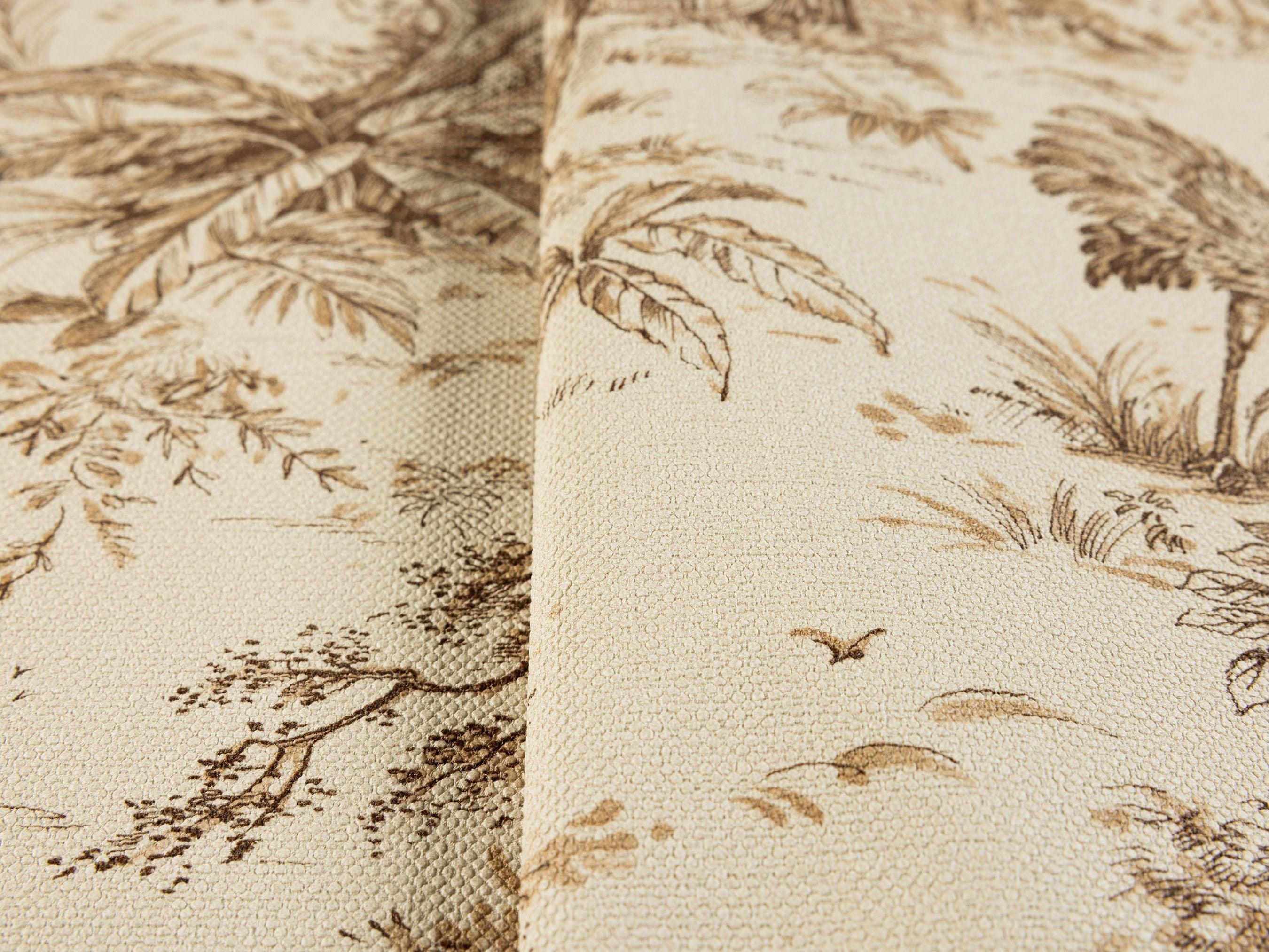 Beige Tropical Toile Textured Wallpaper, Stylish Plants Animals Jungle Forest Theme Wallcovering