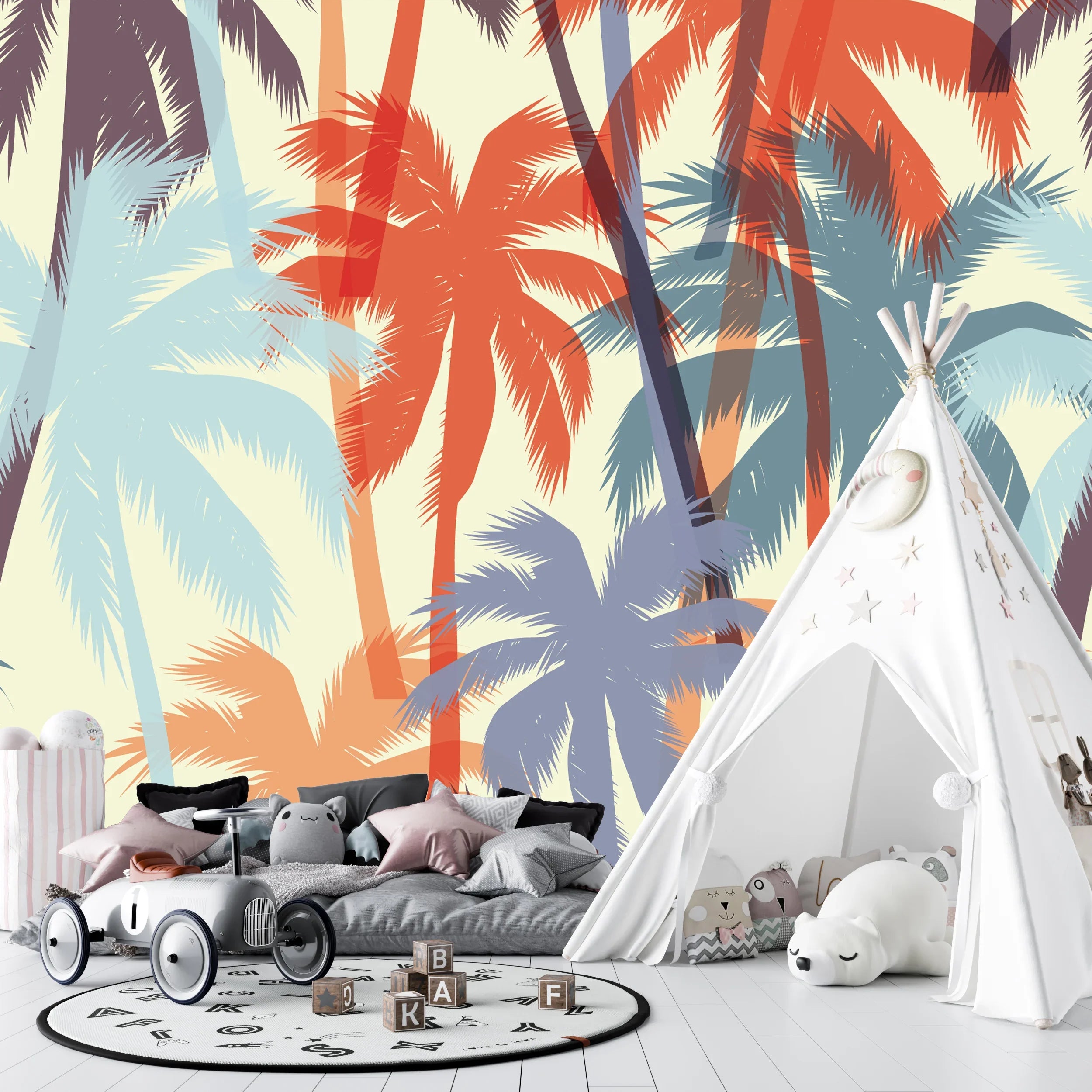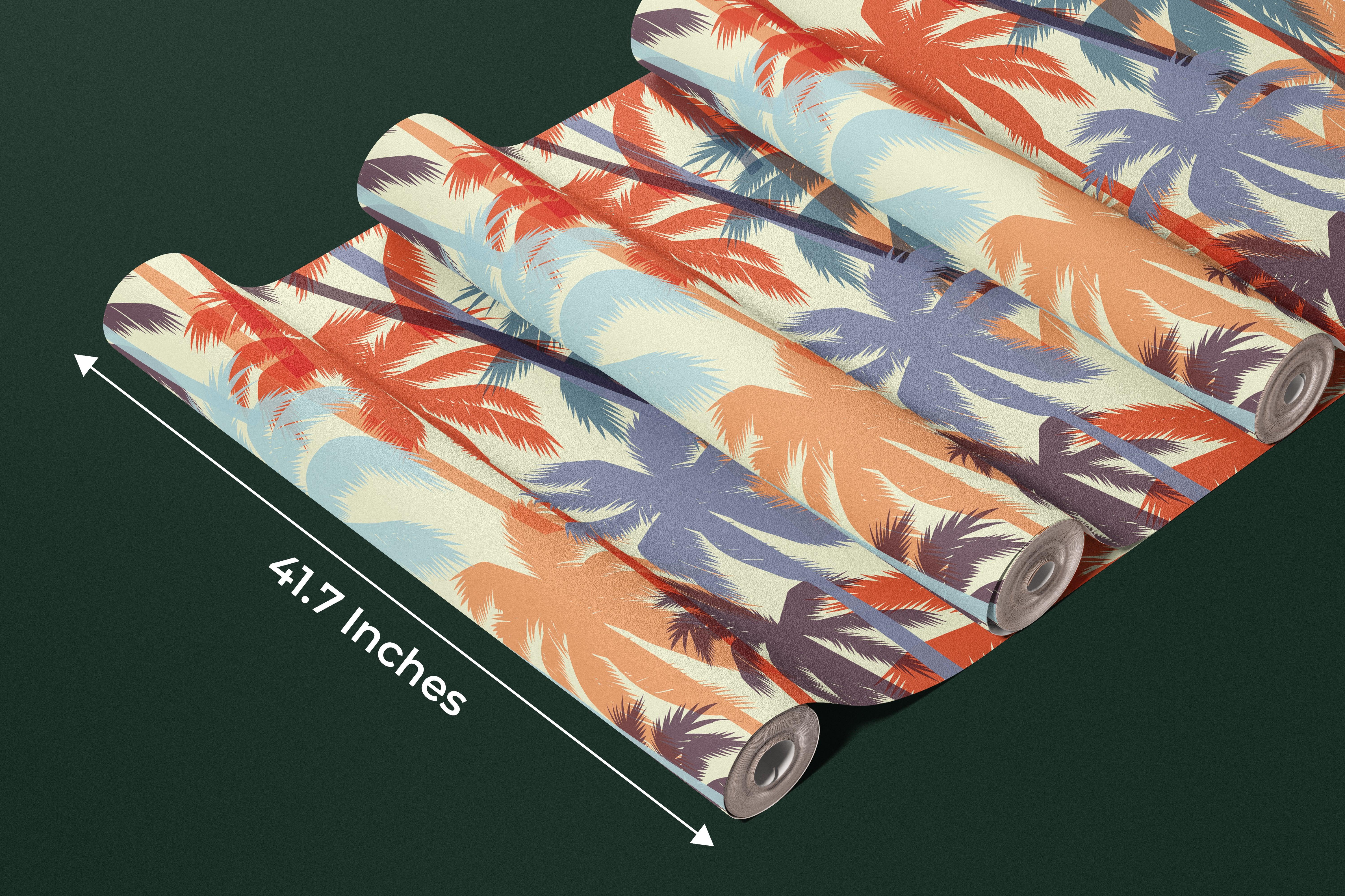 Tropical Summer Print with Palms Wallpaper, Seamless Pattern Mural, Oversized Custom Size Wall Art, Non-Woven, Non-Adhesive, Modern Wall Paper, Removable
