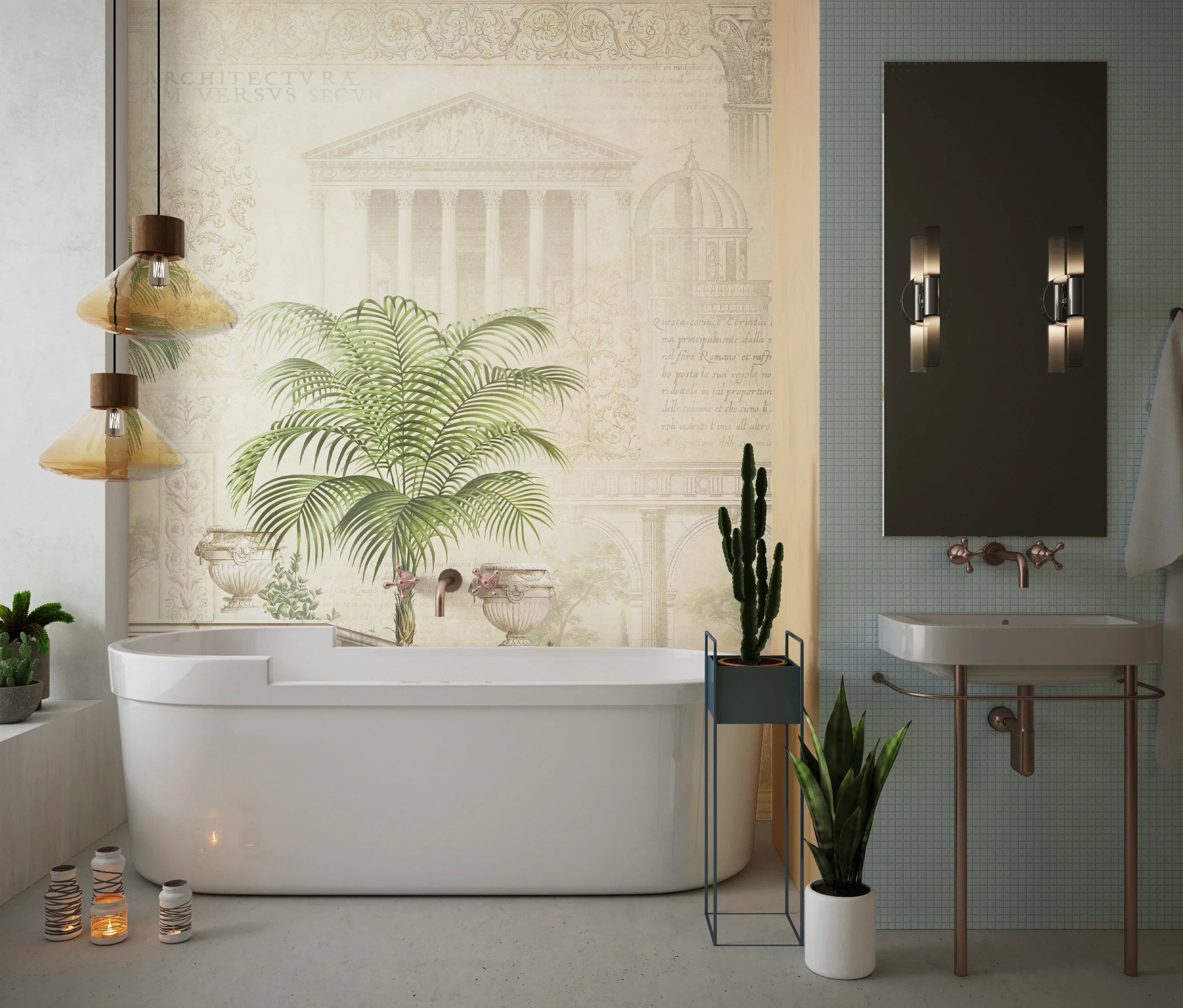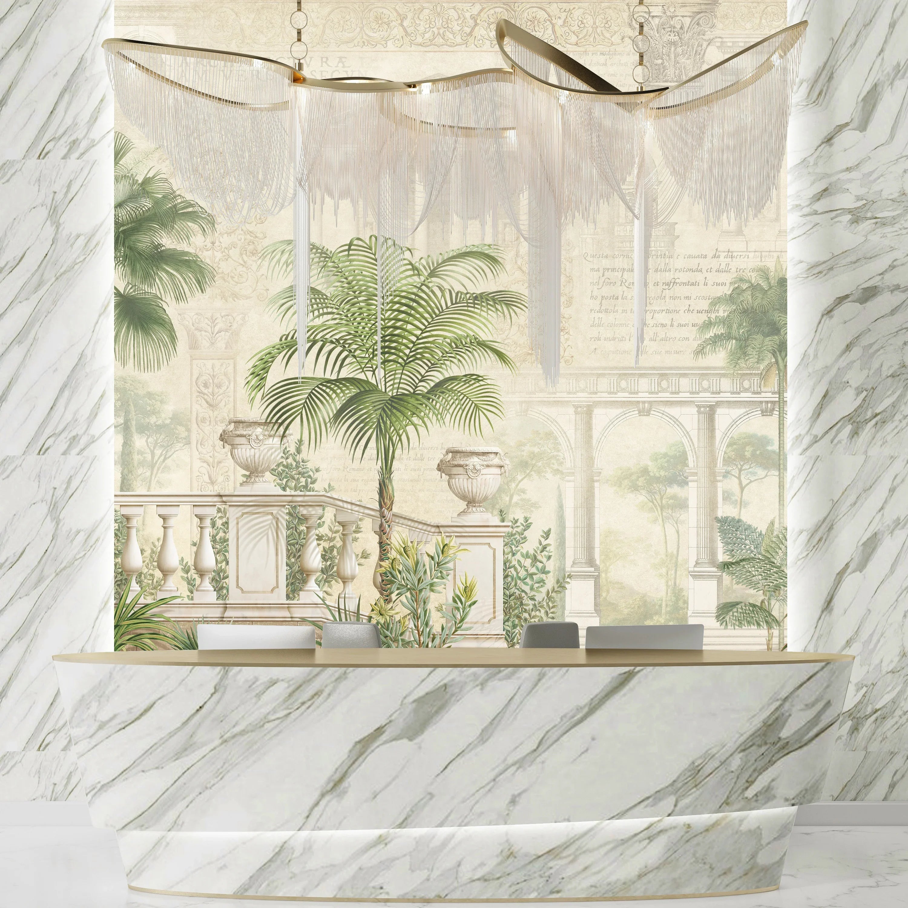 Tropics Wallpaper, Architecture Mural, Oversized Custom Size Wall Art, Non-Woven, Non-Adhesive, Modern Wall Paper, Removable