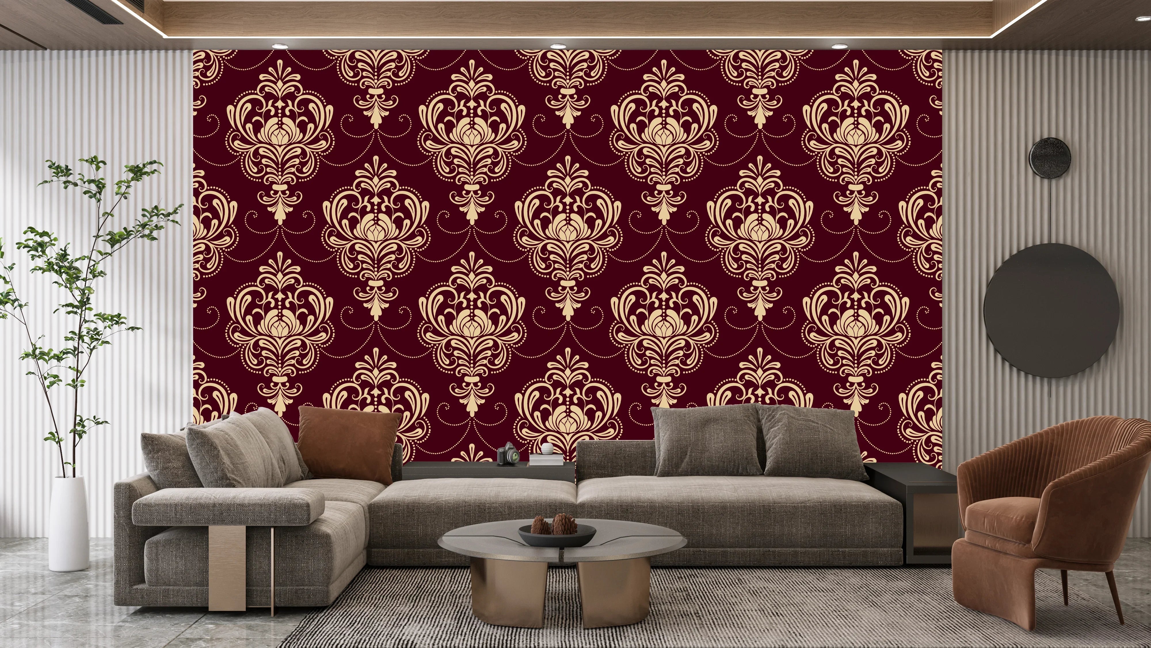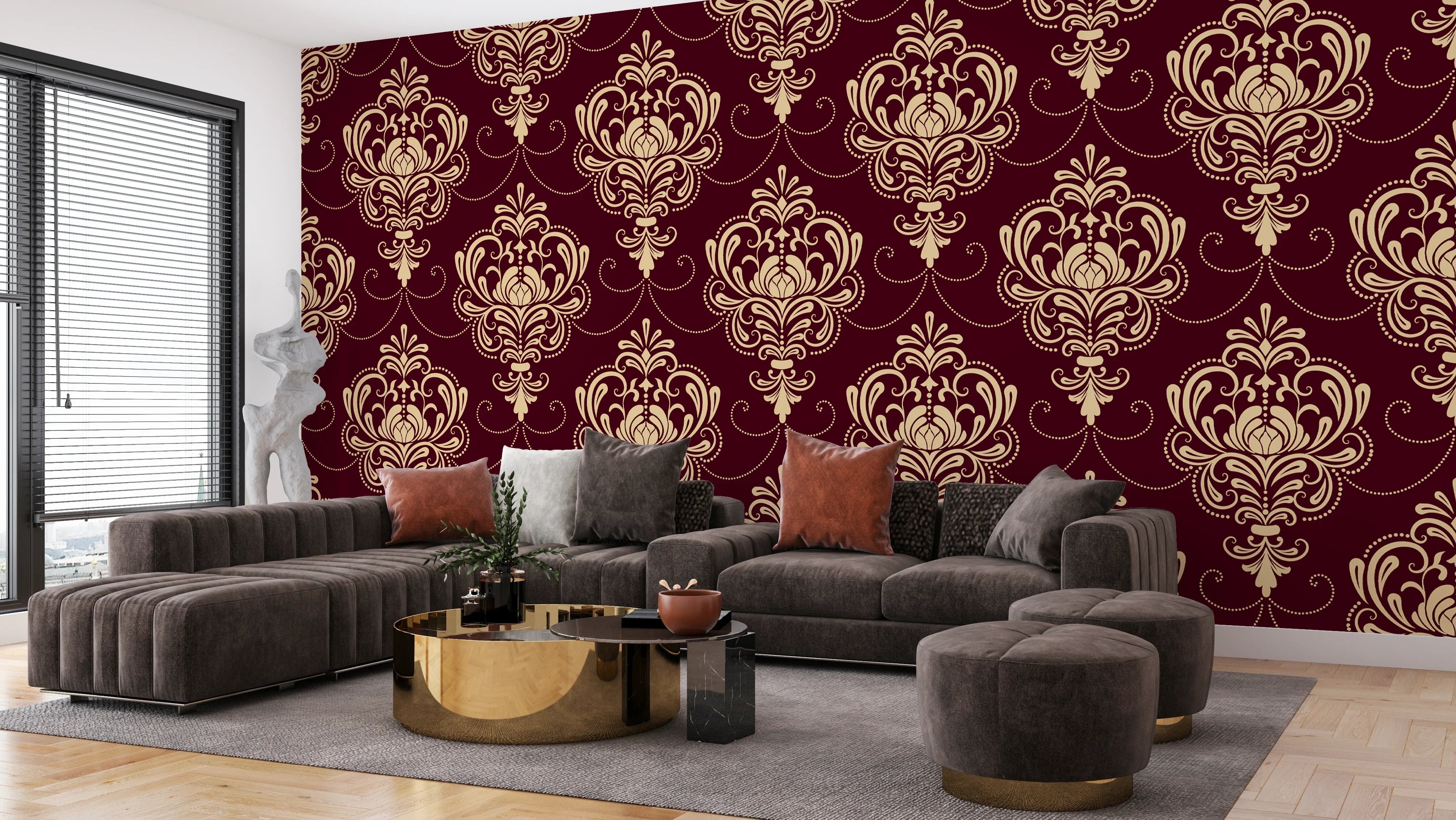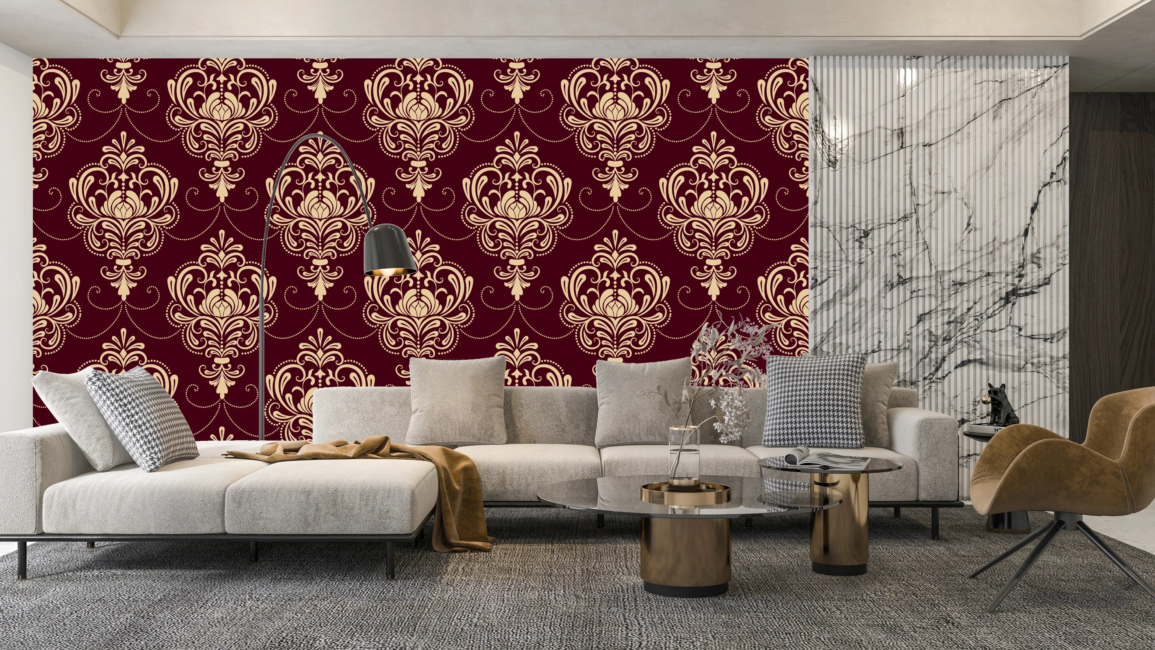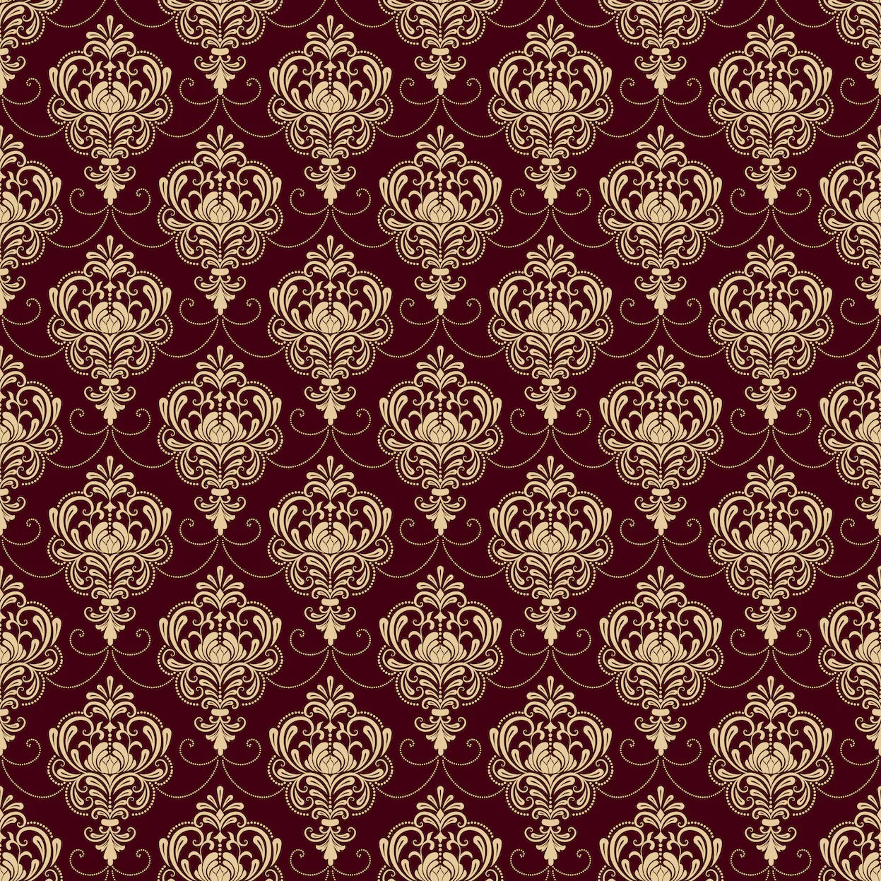 Royal Victorian Damask Wallpaper, Seamless Pattern Mural, Oversized Custom Size Wall Art, Non-Woven, Non-Adhesive, Modern Wall Paper, Removable
