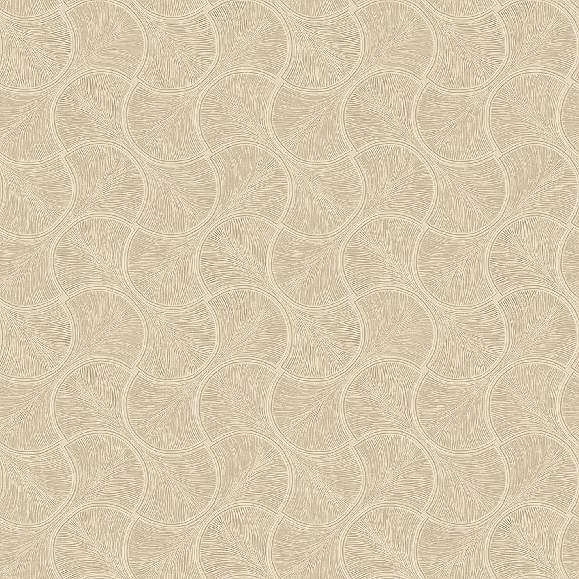 Round Geometric Shapes Deep Embossed Wallpaper, Beige Shiny Surface Textured Wall Accent Decor