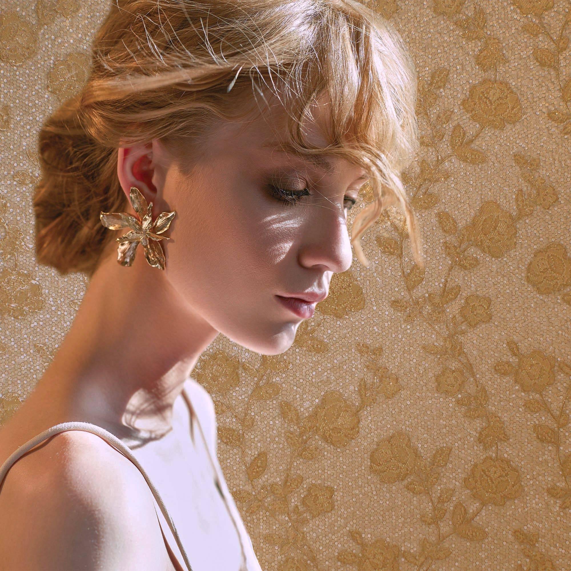 Stylish Golden Pattern Floral Embossed Wallpaper, Home Wall Decor, Aesthetic Wallpaper, Textured Wallcovering Non-Adhesive, Honeycomb Decor