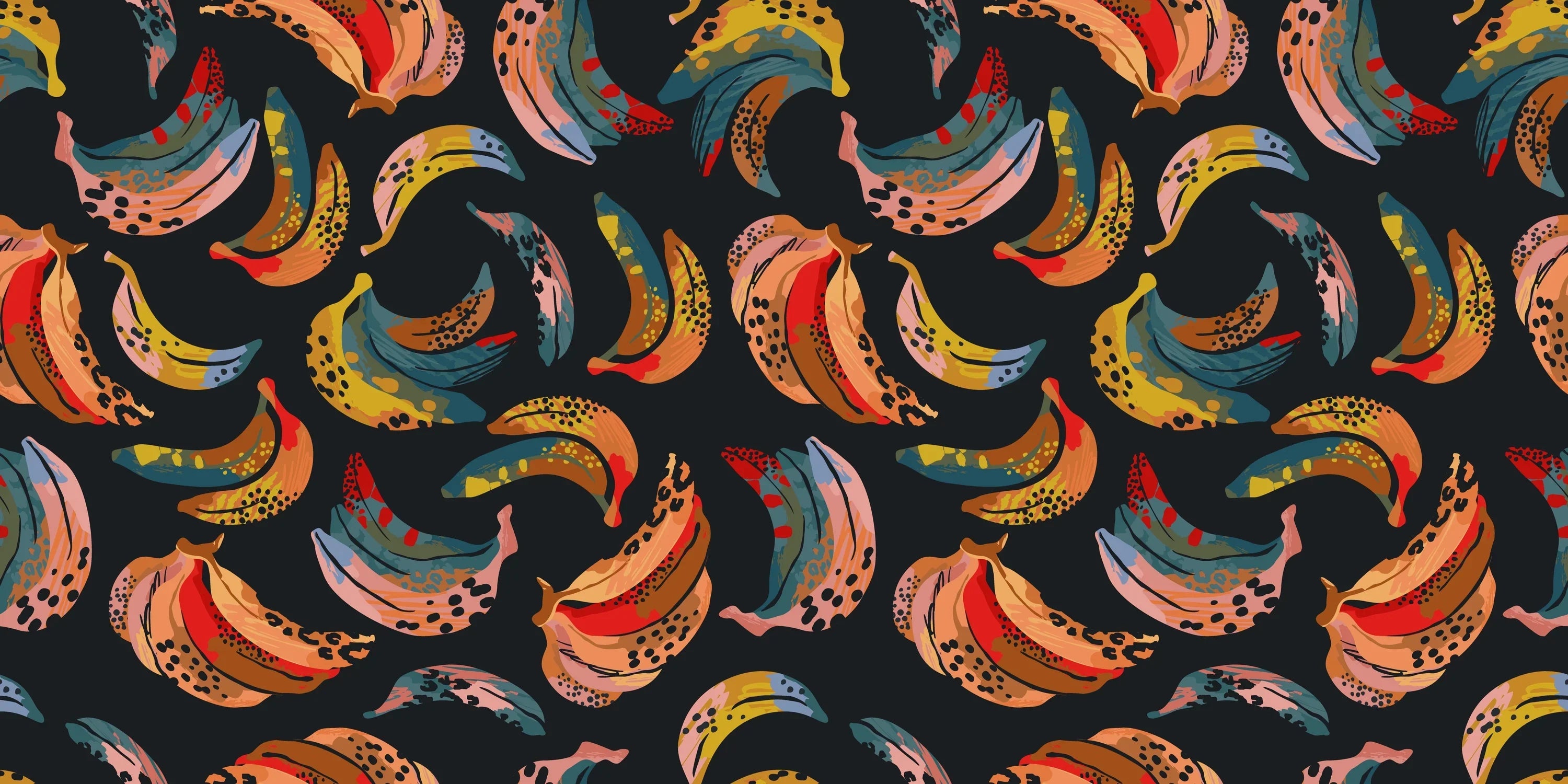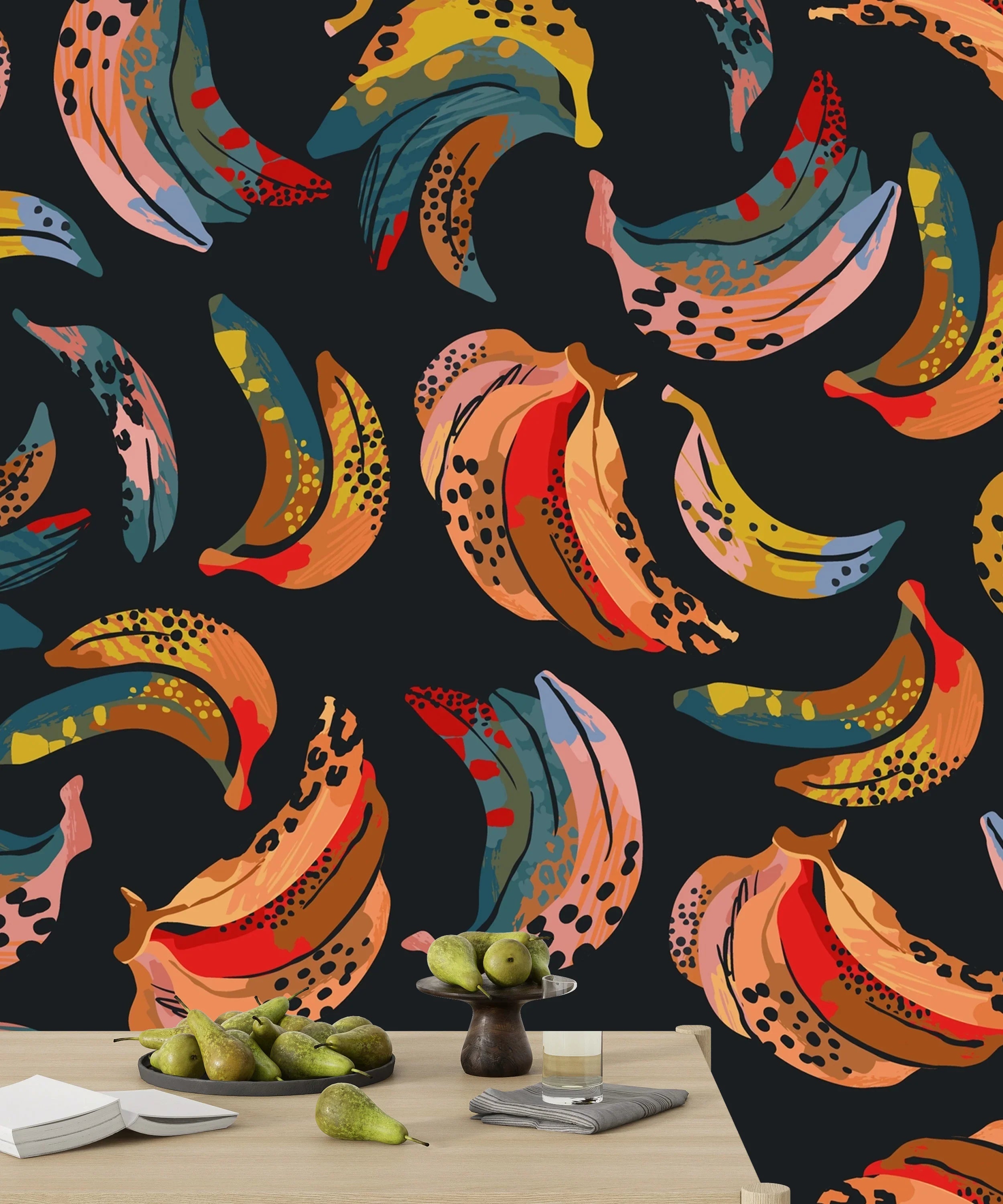 Abstract Bananas Wallpaper, Seamless Pattern Mural, Oversized Custom Size Wall Art, Non-Woven, Non-Adhesive, Modern Wall Paper, Removable