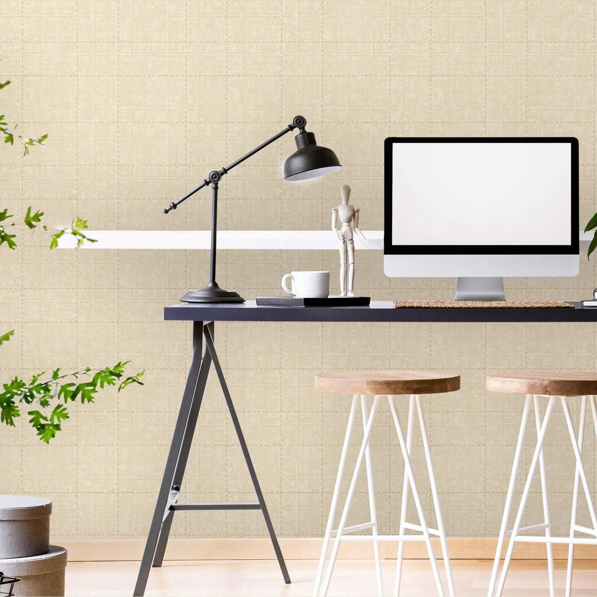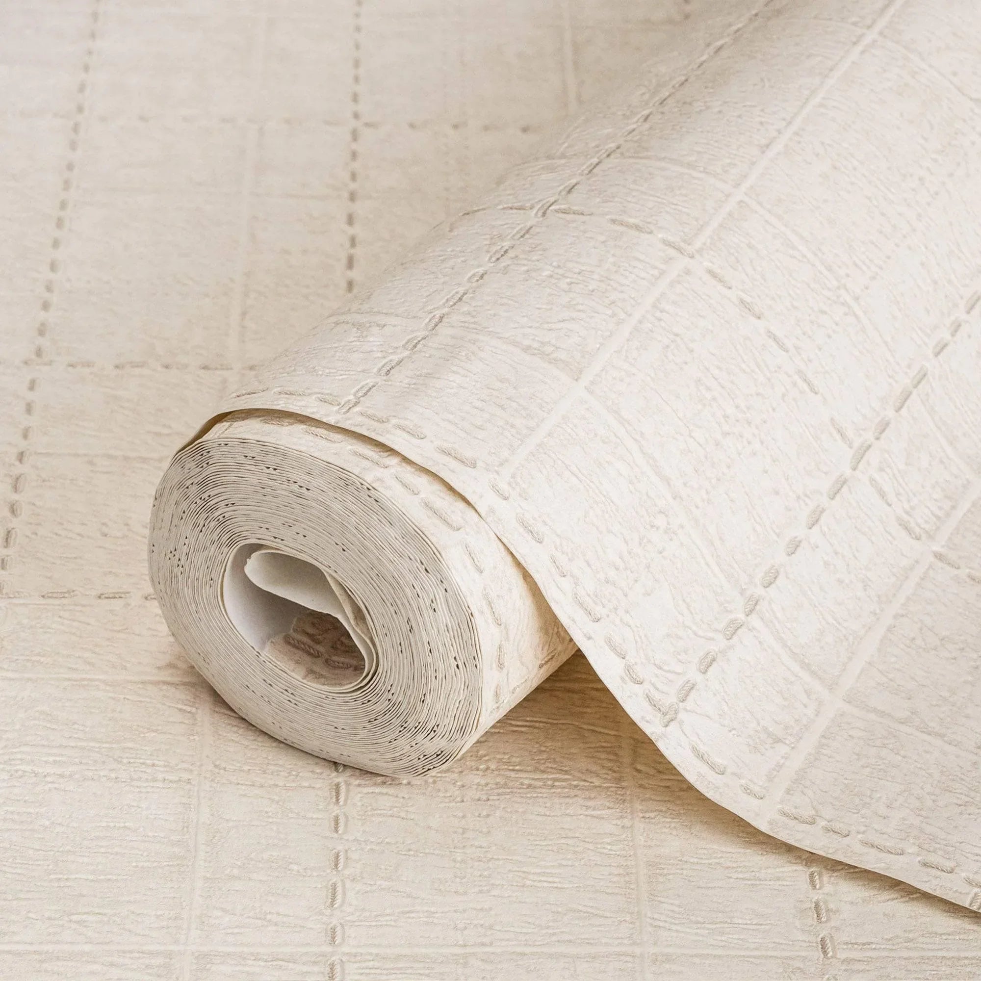 Deep Embossed Geometric Beigie, Home Wall Decor, Aesthetic Wallpaper, Textured Wallcovering Non-Adhesive and Non-Peel