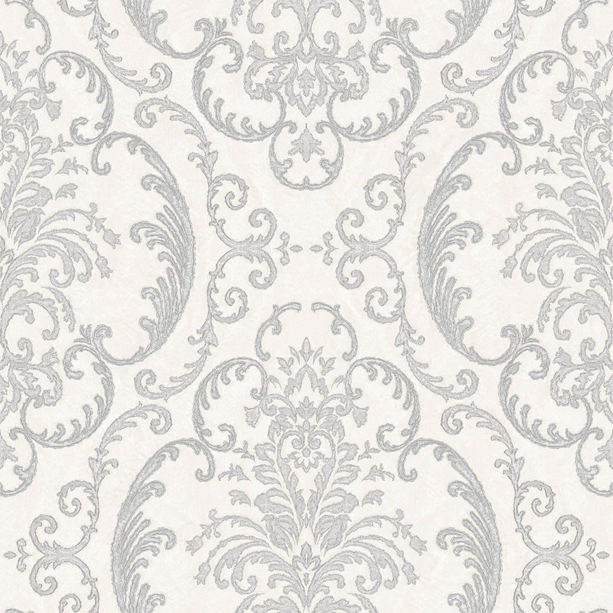 Deep Embossed Sparkling Damask Wallpaper, Stylish White Glittering Luxury Fabric Feel Vivid Colors, Home Commercial Use, Easy Clean, Water Resistant