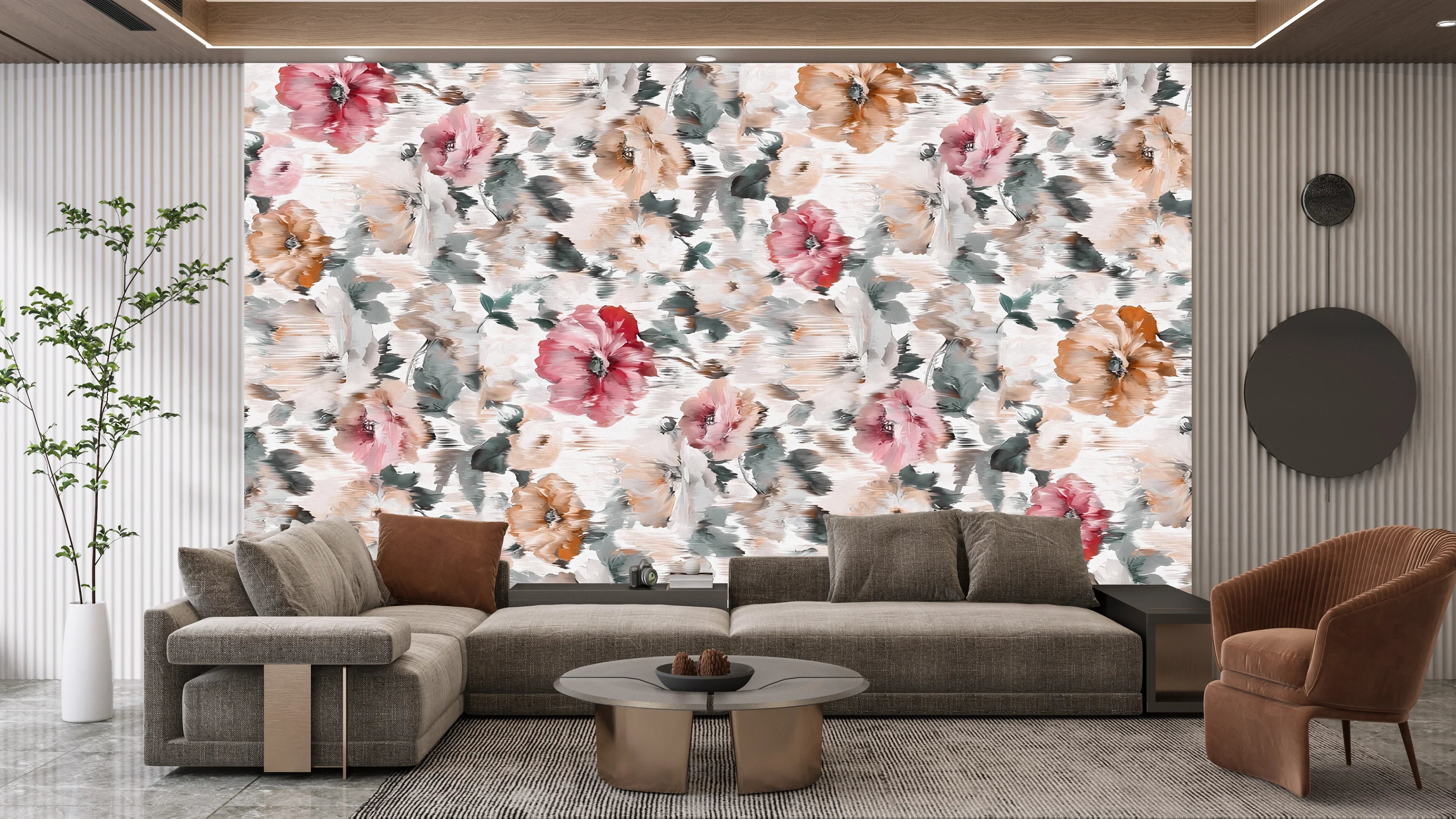 Elegant Beatiful Floral Wallpaper, Seamless Pattern Mural, Oversized Custom Size Wall Art, Non-Woven, Non-Adhesive, Modern Wall Paper, Removable
