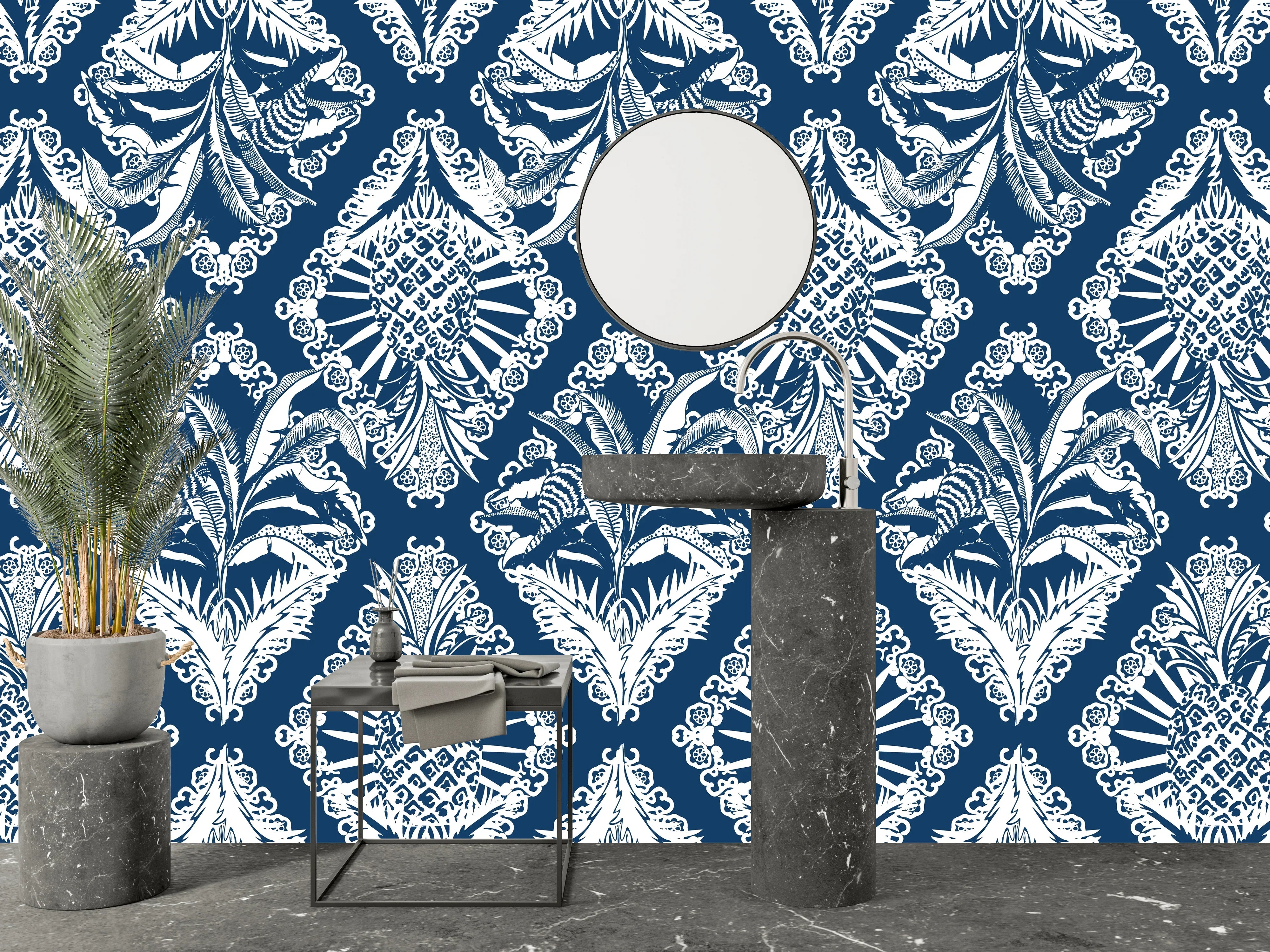 Retro Tropical Style Wallpaper, Seamless Pattern Mural, Oversized Custom Size Wall Art, Non-Woven, Non-Adhesive, Modern Wall Paper, Removable