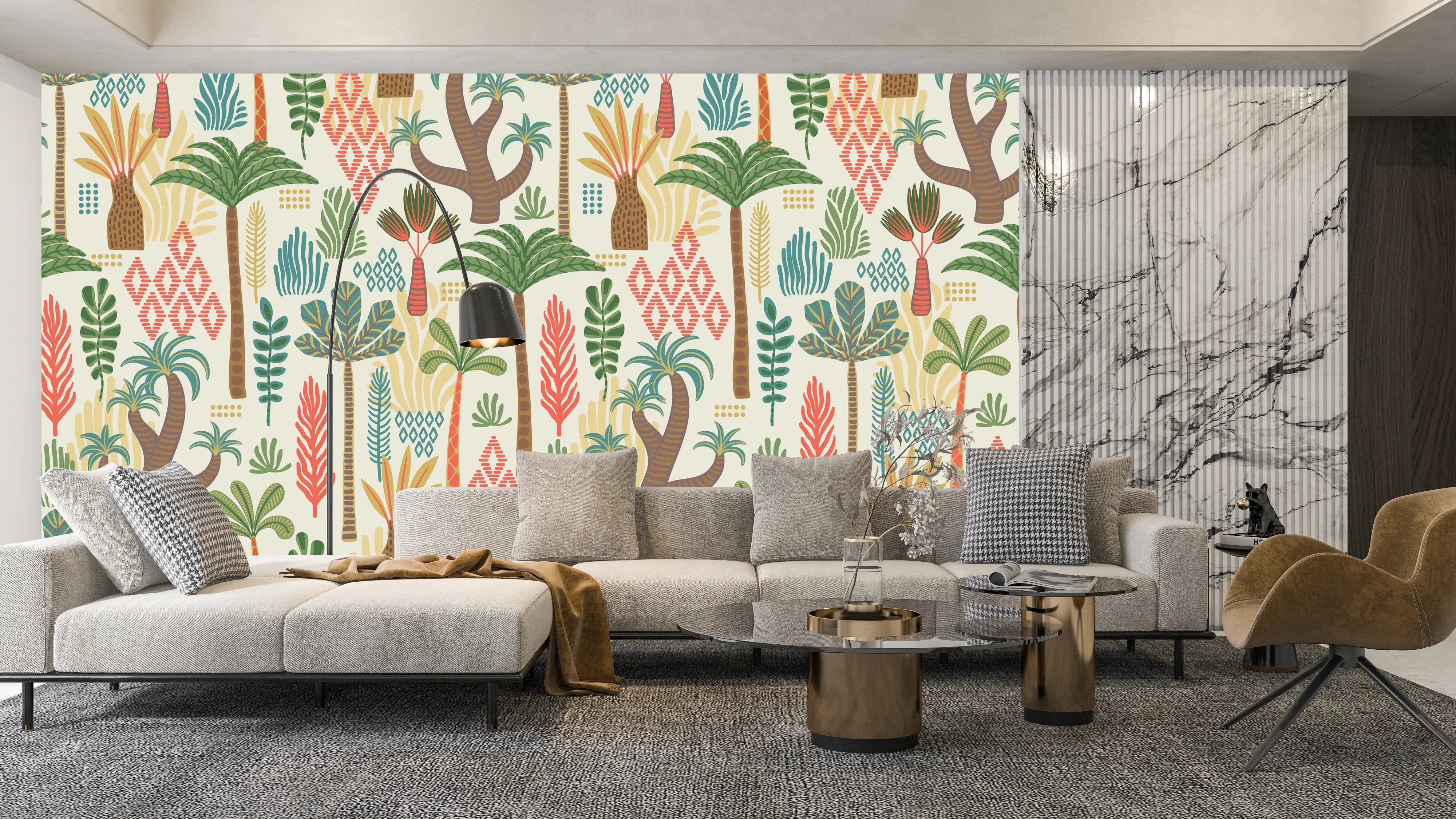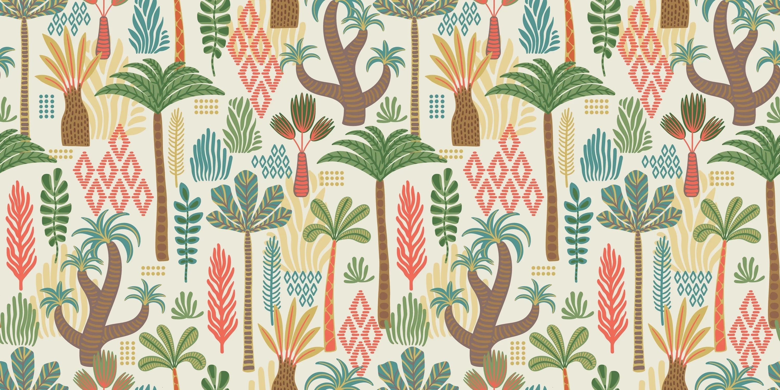 Ethnic Tropical Wallpaper, Seamless Pattern Mural, Oversized Custom Size Wall Art, Non-Woven, Non-Adhesive, Modern Wall Paper, Removable
