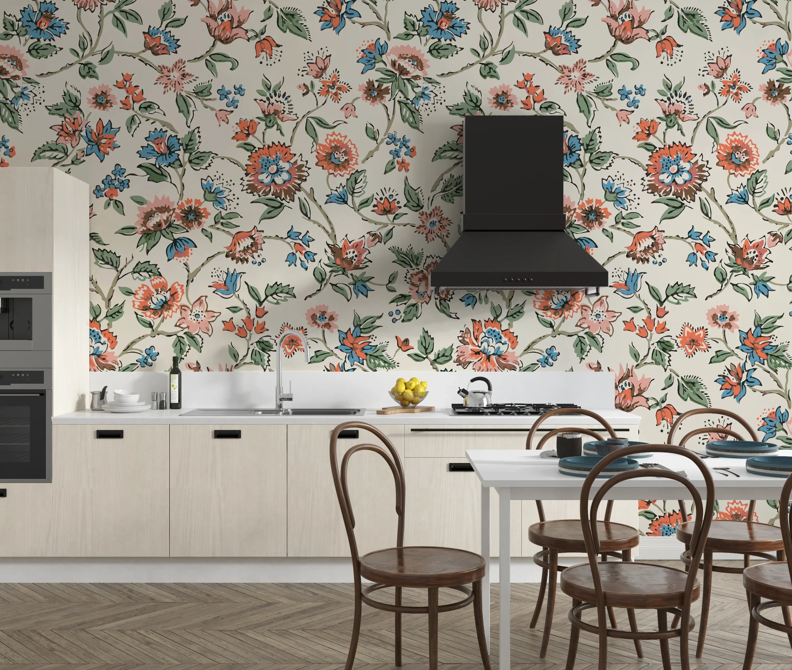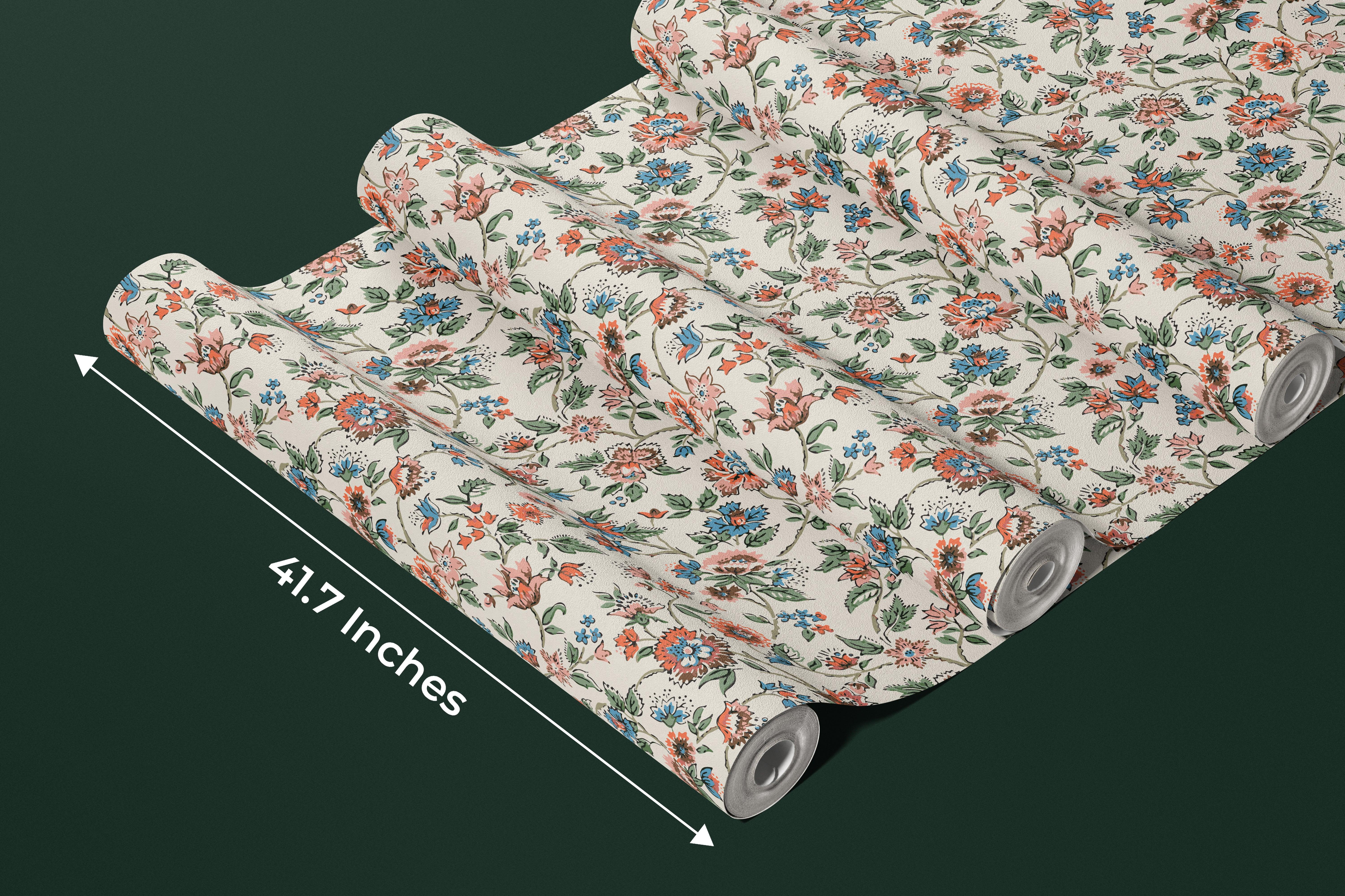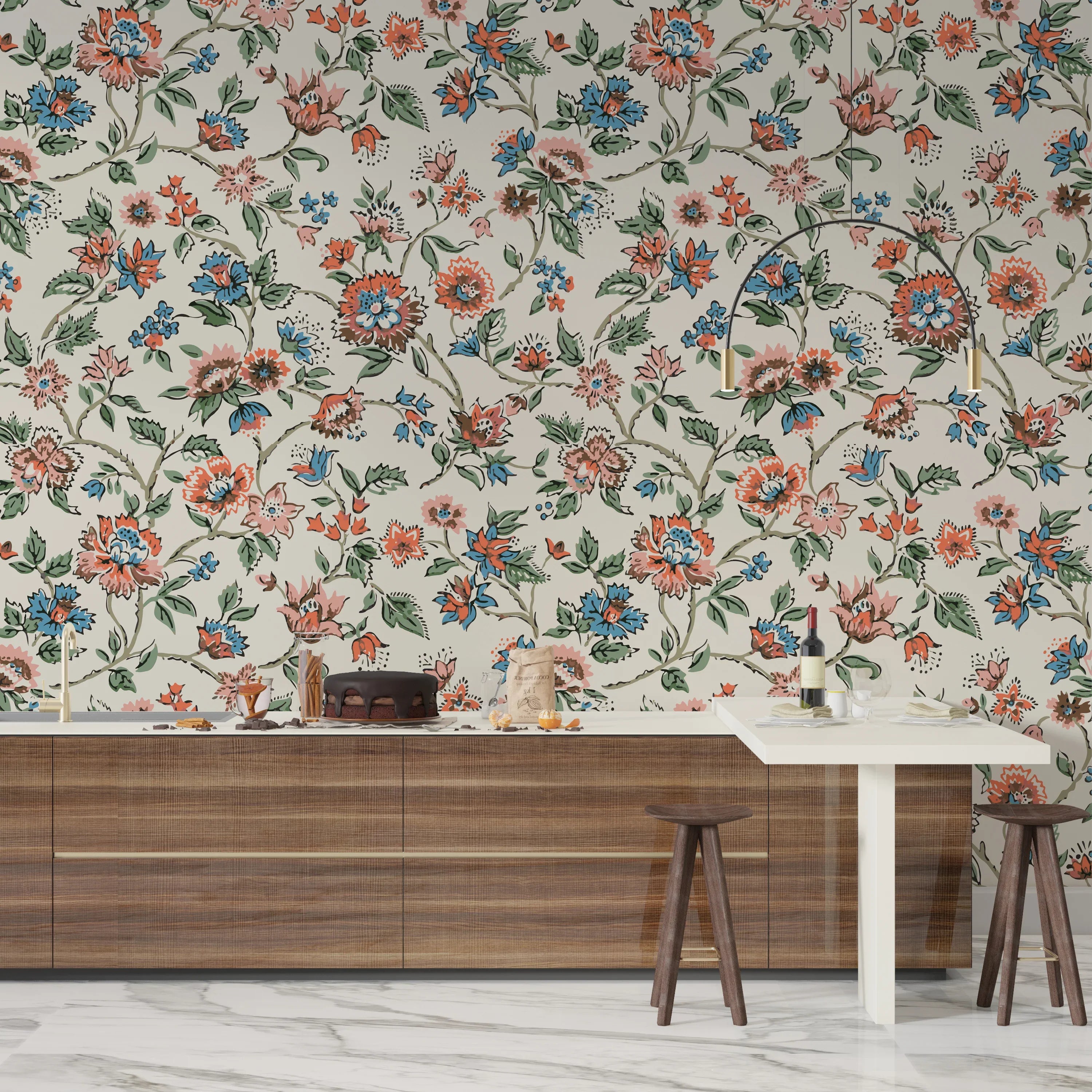 Vintage Flowers Wallpaper, Ethnic Mural, Oversized Custom Size Wall Art, Non-Woven, Non-Adhesive, Modern Wall Paper, Removable