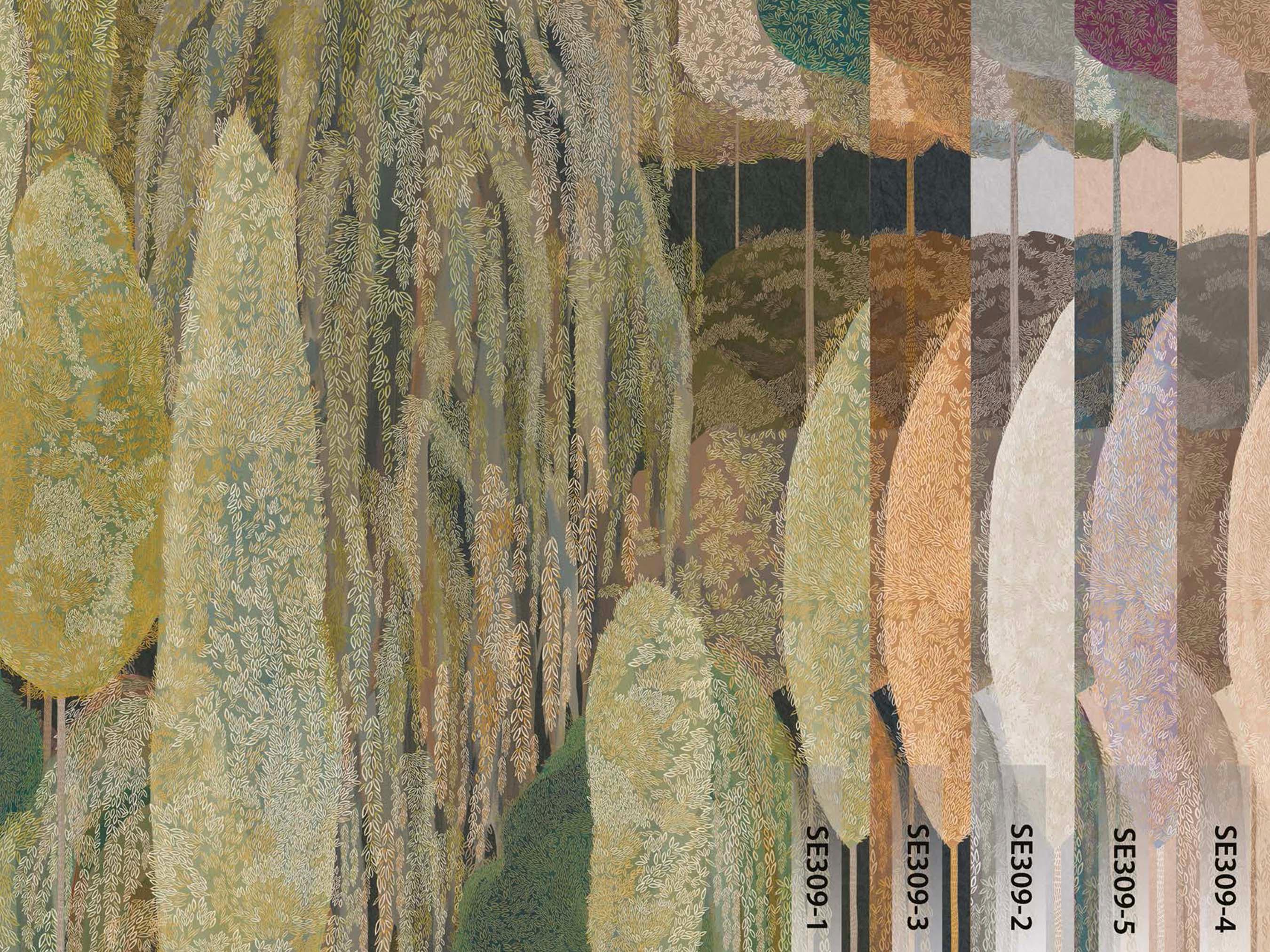 Modern Art Wall Mural, Trees Wallpaper, Beige Oversized Nature Theme Customized Wall Covering, Non-Woven, Non-Adhesive, Removable, Washable, Large