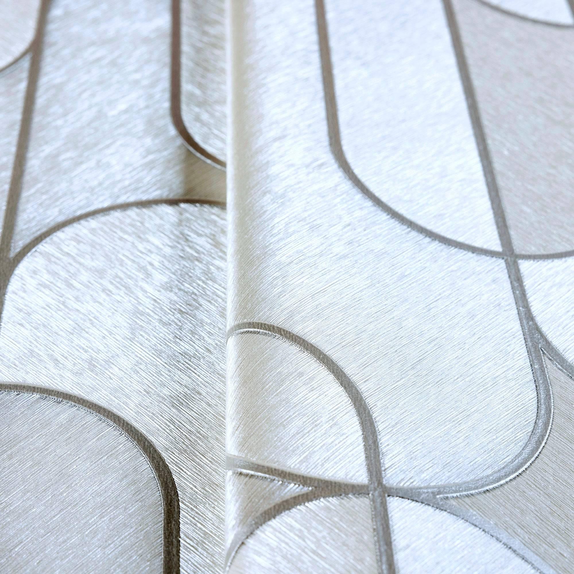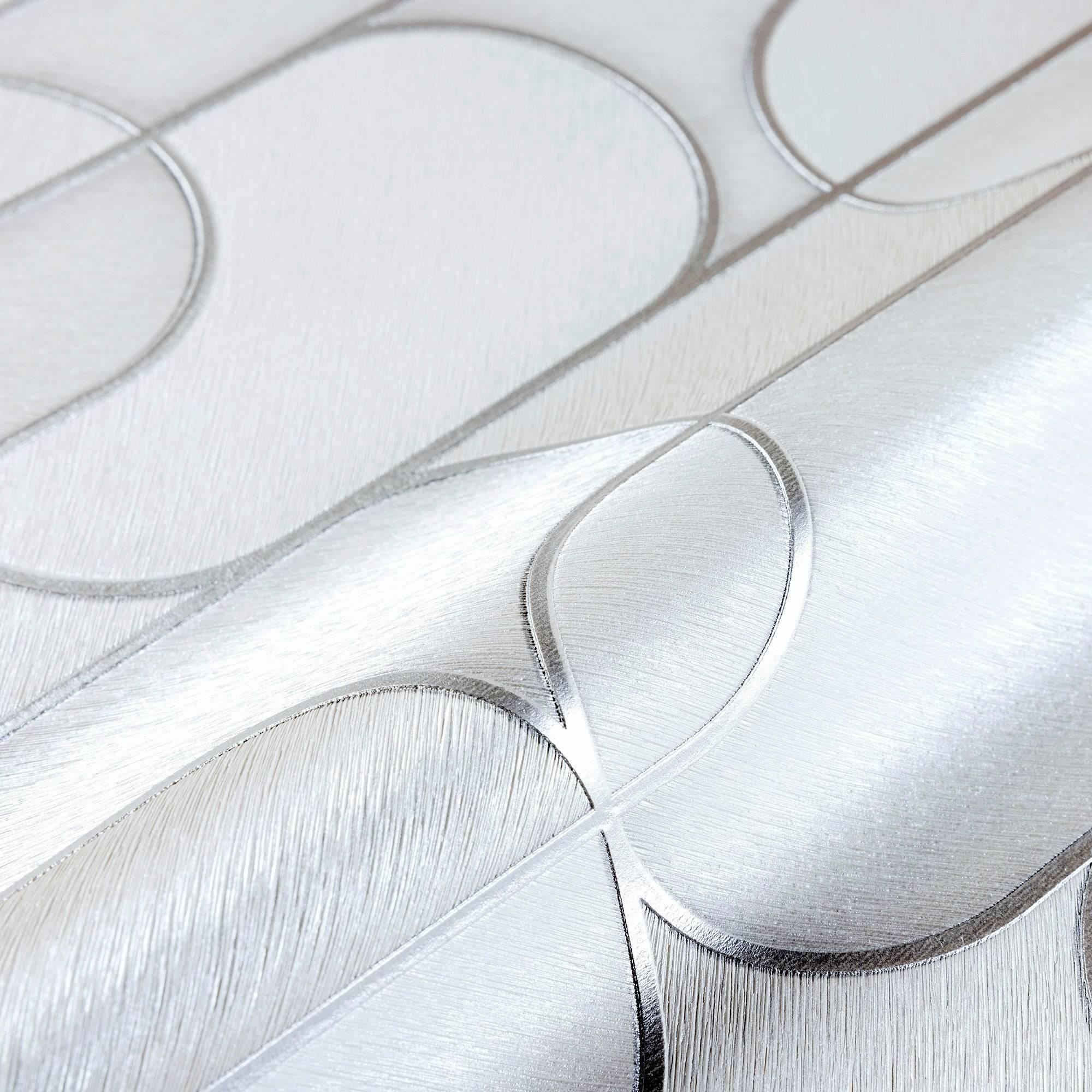 Rounded Shapes 3D Embossed Wallpaper, White Velvet Flocked Geometric Elegant Wallcovering