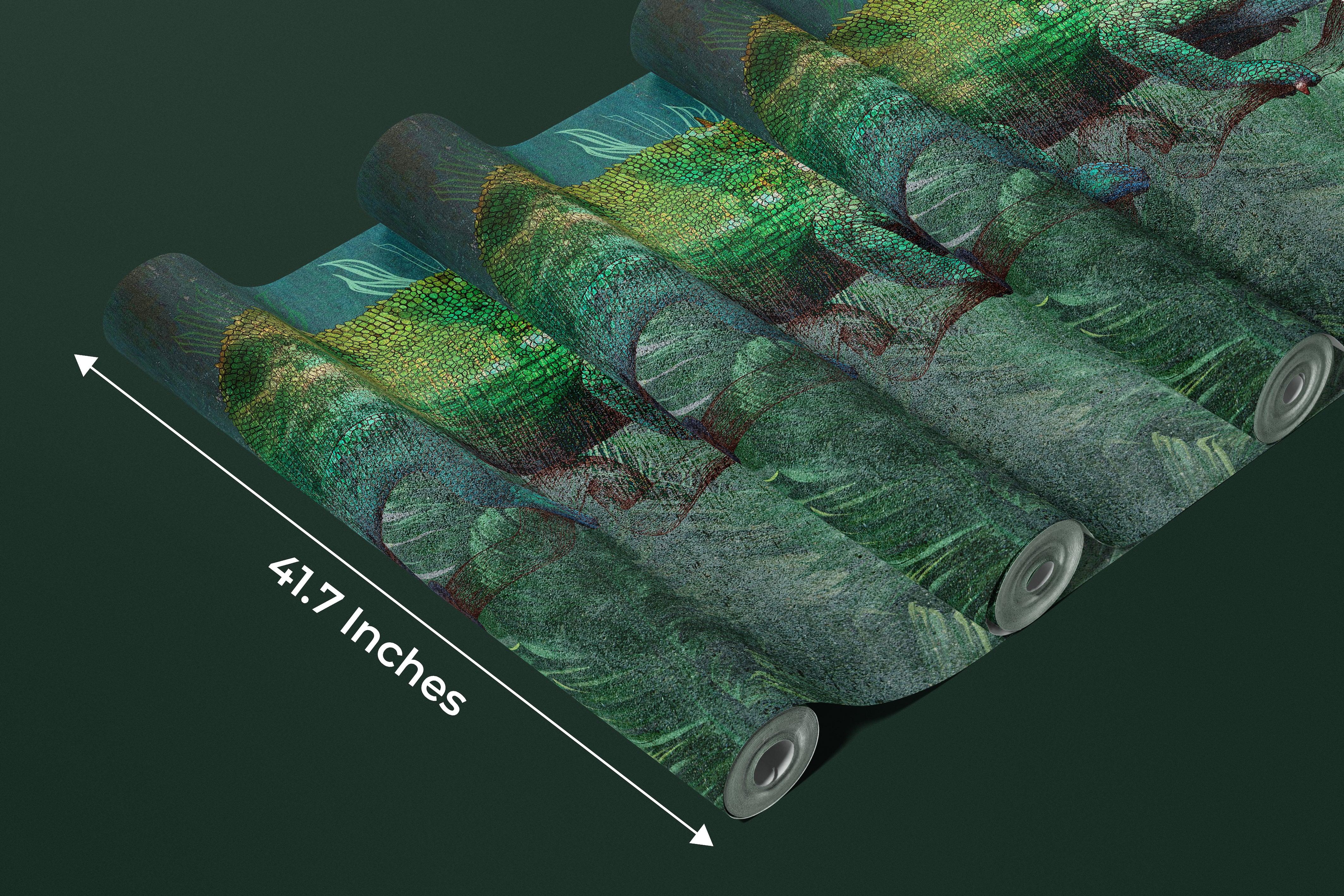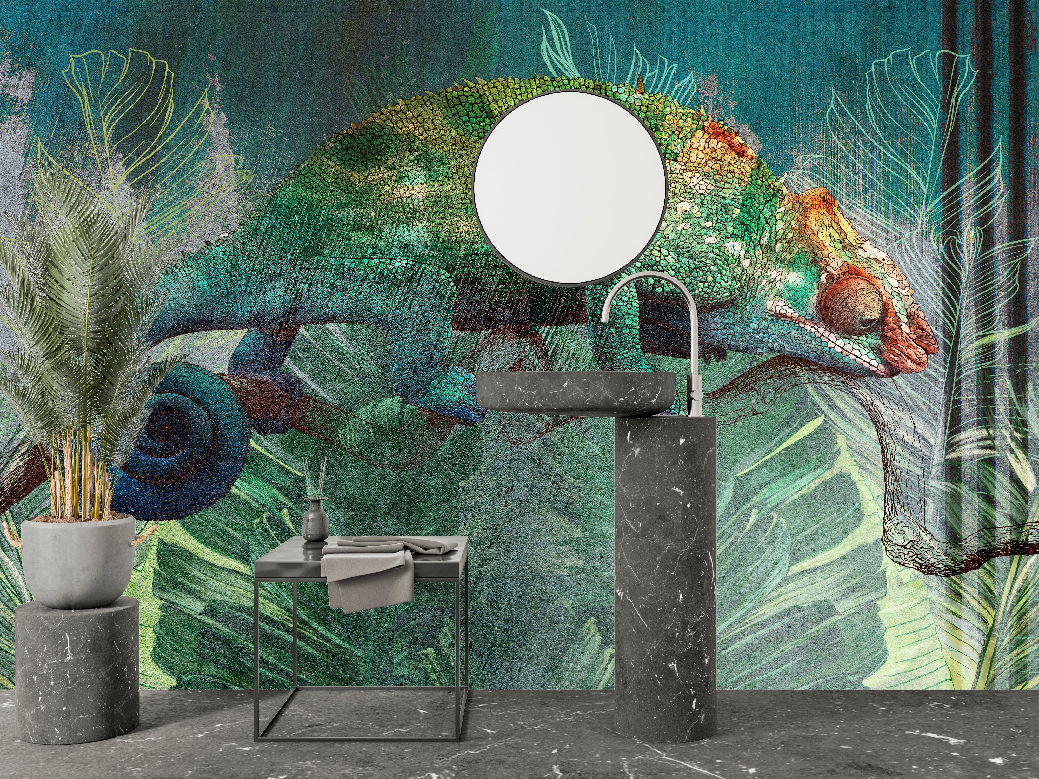 Tropical Leaves Wallpaper, Chameleon Background Mural, Oversized Custom Size Wall Art, Non-Woven, Non-Adhesive, Modern Wall Paper, Removable