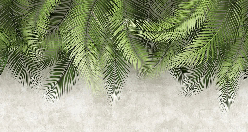 Tropical Tree Leaves Wallpaper, Above the Bed Wall Mural, Green Leaves Custom Size Wall Covering, Non-Woven, Non-Pasted, Washable, Removable